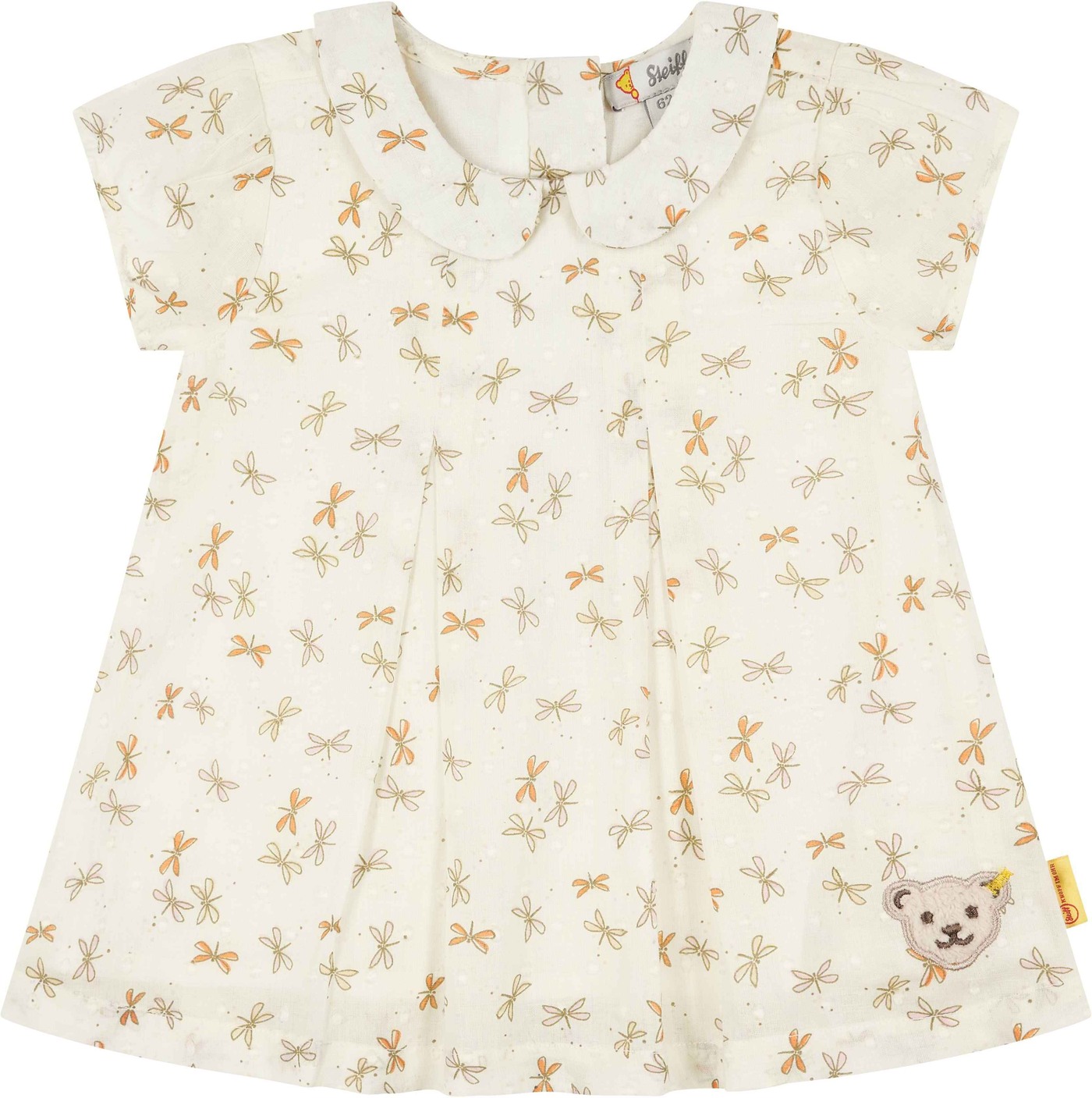 Kurzarm-Kleid von STEIFF aus der Blossom-Kollektion für Mädchen.Super bequemes Baumwollkleid mit Fältchen vorne und ausgestelltem Saum. Der Bubikragen sprüht vor mädchenhaftem Charme zum Libellenmuster. Kleine Fältchen am Ärmel runden den zauberhaften Look ab. Der Reißverschluss hinten ermöglicht ein einfaches Hineinschlüpfen.