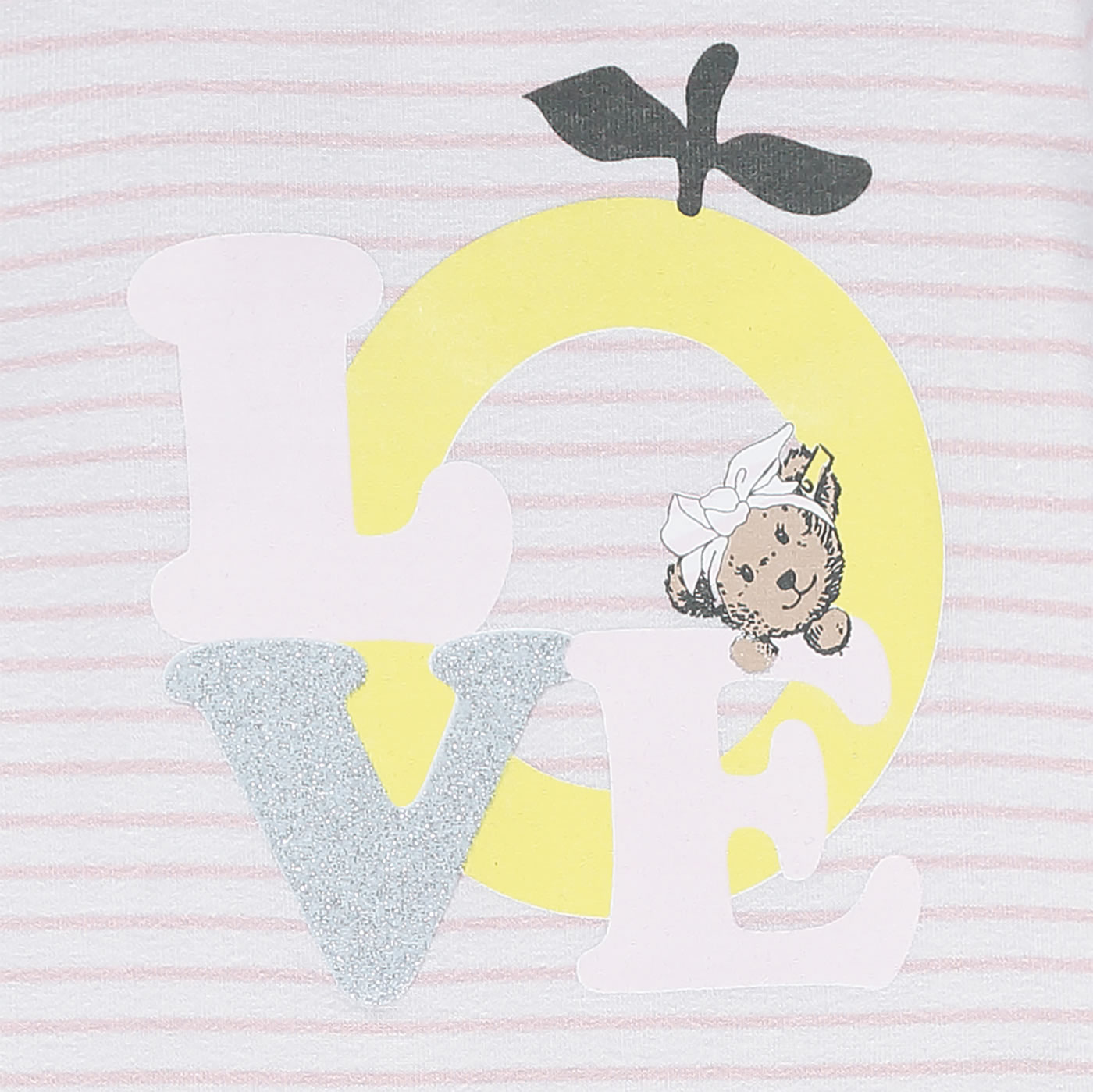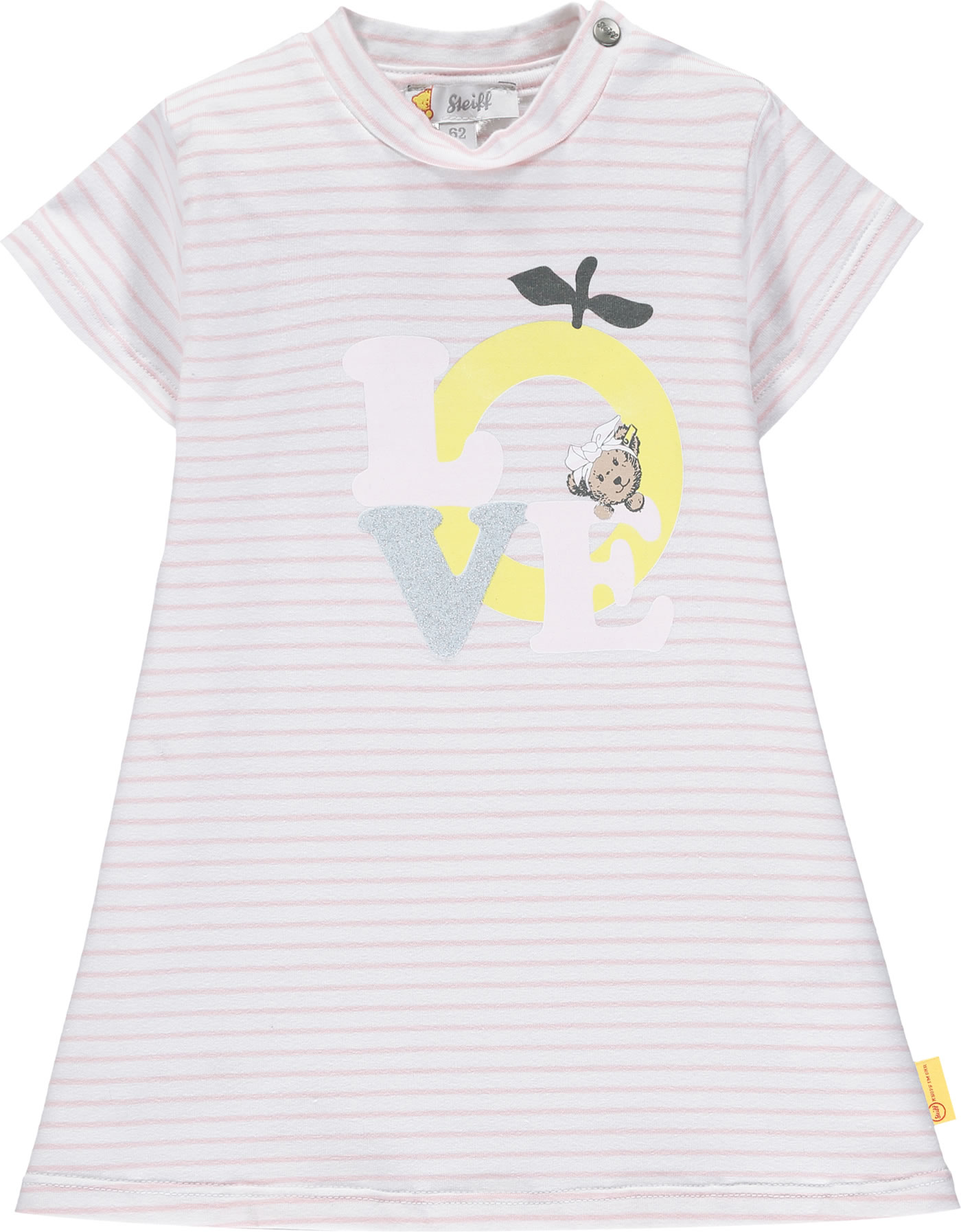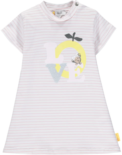 Gestreiftes Kurzarm-Kleid von STEIFF aus der Hello Summer-Kollektion. Ein schönes Detail ist der Print mit STEIFF Bär auf der Brust. Das Kleid ist aus leichtem Jersey und Druckknöpfe auf der Schulter erleichtern das An- und Ausziehen.