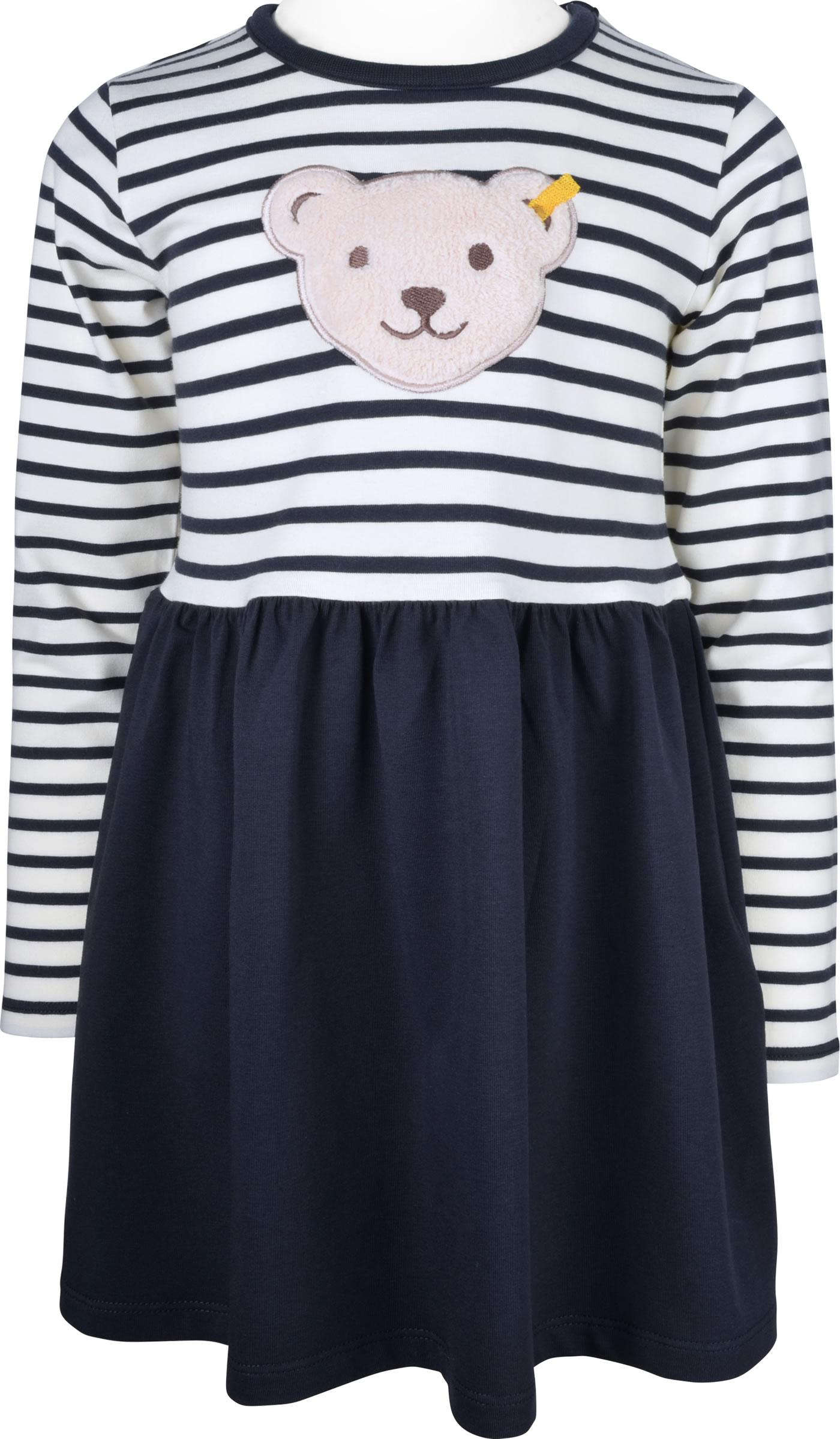 Ika ✓verifizierter Kauf14.10.2024Ich habe das Steiff Langarmkleid, Farbe navy bewusst eine Nummer größer, in Gr. 92, bestellt, damit das Kind lange etwas davon hat. Einzig die Ärmel muss ich umkrempeln, ansonsten sitzt es perfekt. Die Quietschfunktion hätte ich nicht gebraucht, aber die Kinder finden sie sehr lustig. Der Stoff ist relativ dünn, also eher geeignet für die Übergangszeit. Mit einer Leggins drunter und einem Strickjäckchen drüber gut zu tragen.