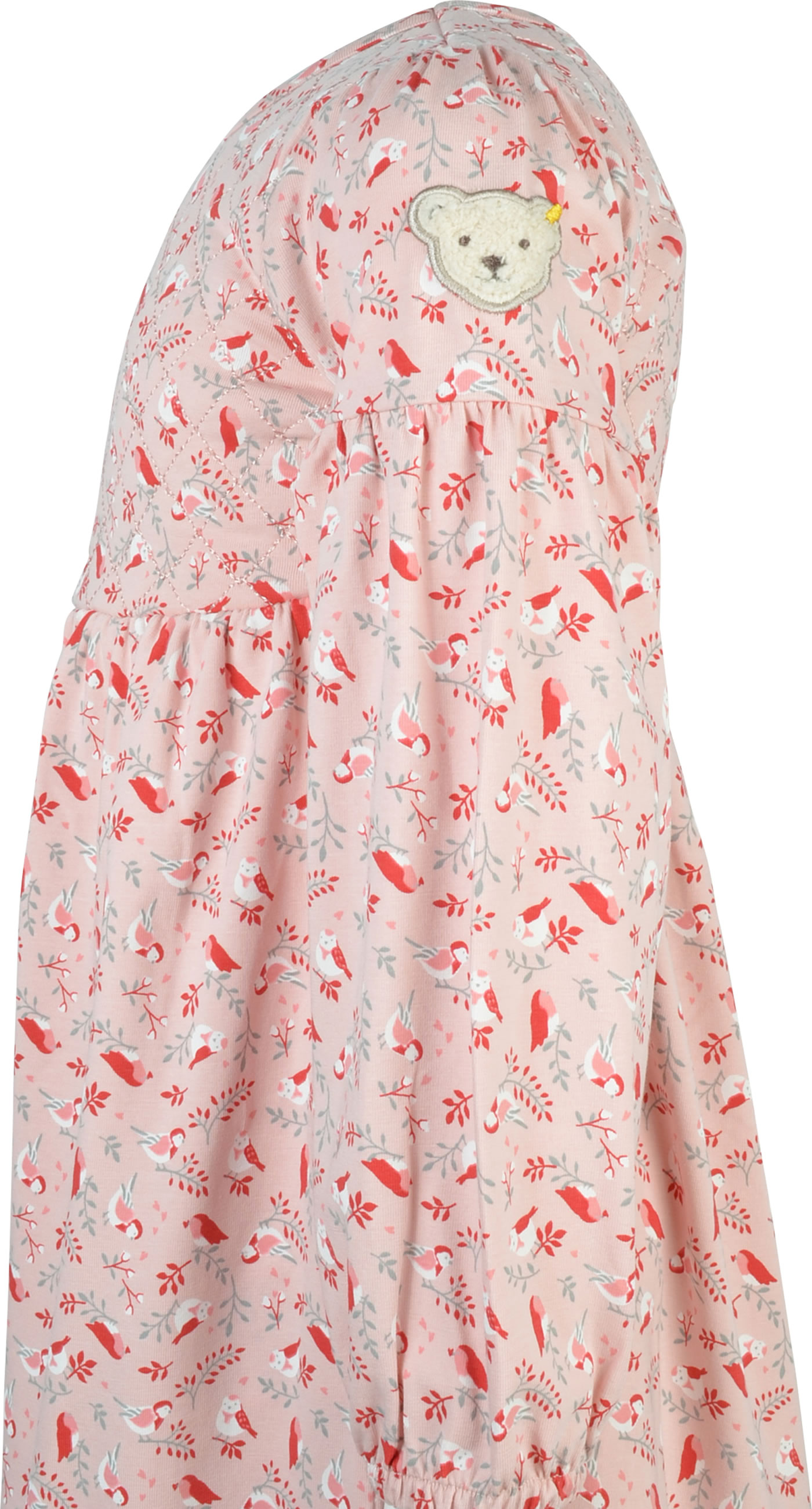 Hübsches Kleid mit langen Ballonnärmeln und Rautensteppung im Oberteil von STEIFF aus der Unicorn Kollektion. Das Kleid ist in A-Linie geschnitten. Das weiche Material sorgt für einen hohen Tragekomfort. Besonders schön ist das Blumen und Vogel Allover-Design und der STEIFF Bär auf dem linken Ärmel.