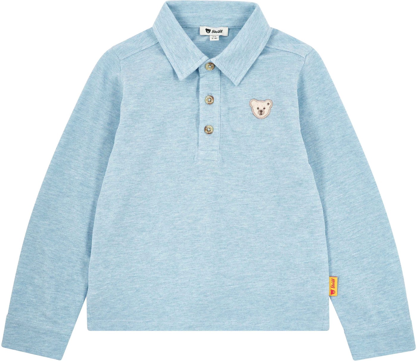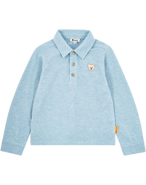 Steiff Langarm-Poloshirt aus 100% Baumwolle - Chambray Blue Melange