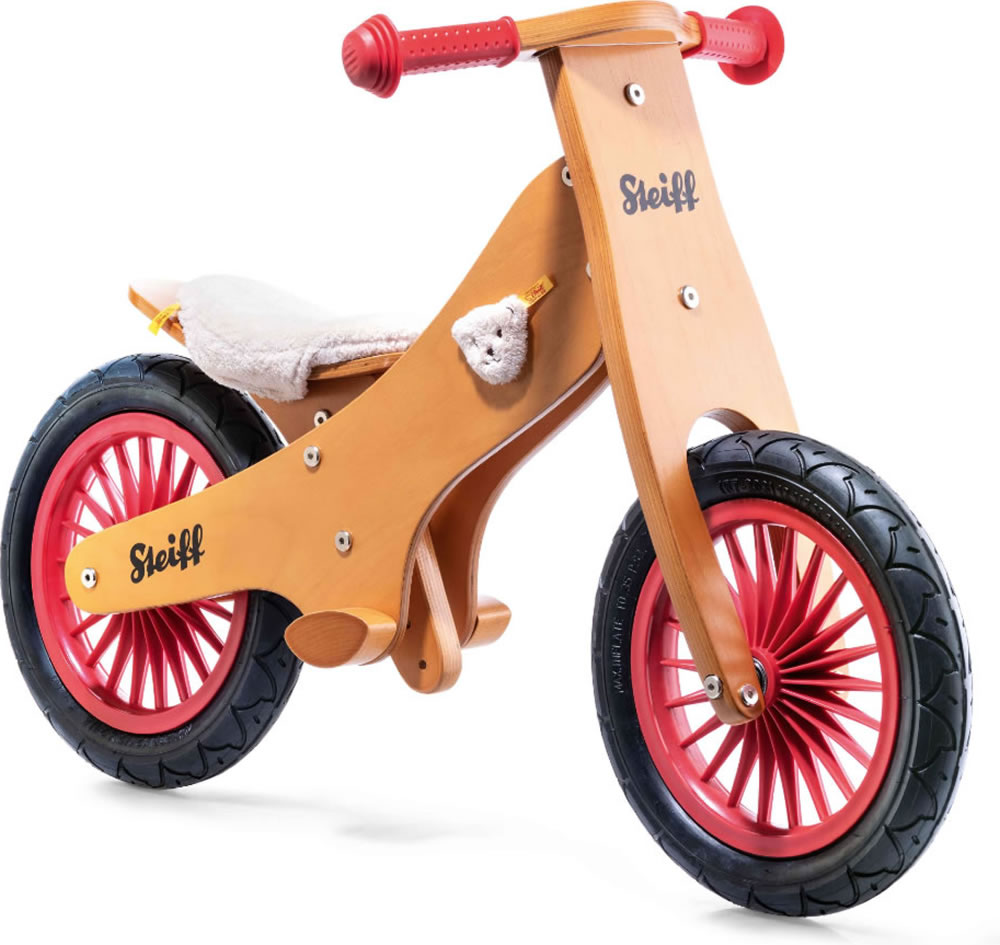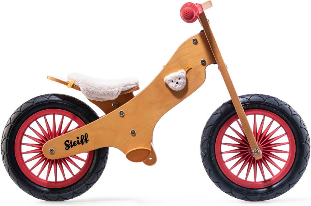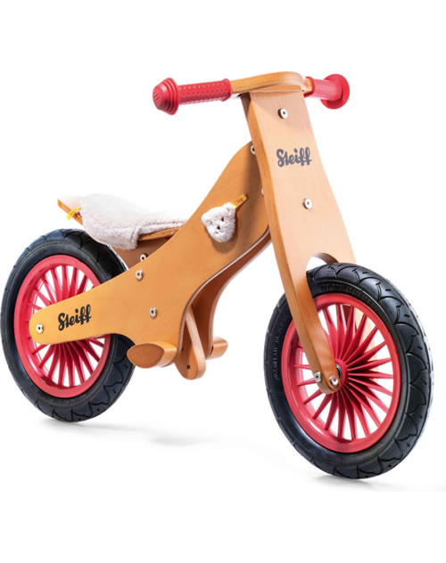 Das Steiff Laufrad Classic wird auch Übungsrad oder Laufrad genannt. Es bereitet Kinder ausgezeichnet auf das Fahren mit einem herkömmlichen Fahrrad mit zwei Rädern vor. Es ist eine pfiffige Alternative zu Stützrädern und gilt als bessere Lösung, wenn es darum geht zu lernen, wie man auf zwei Rädern im Gleichgewicht bleibt. Der Entwurf zur Konstruktion stammt von einem holländischen Designer und wurde inspiriert durch das Lebensgefühl der holländischen Fahrradfahrer, nämlich mit dem Steiff Laufrad Classic ein umweltfreundliches, zukunftsweisendes und qualitativ hochwertiges Laufrad anzubieten, das Kinder und ihre Familien zu einem aktiven, kreativen und abenteuerlustigen Lebensstil inspiriert. Beim Steiff Balance Bike Classic handelt es sich um ein handgefertigtes, preisgekröntes Laufrad aus Holz in einem klassischen Look, der sowohl durch das ursprüngliche Logo als auch den Bärenkopf aus Plüsch als Absender der Marke Steiff inspiriert wurde.