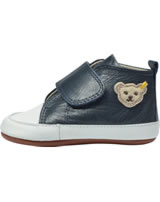 Hochwertige Glattleder-Lauflernschuhe von Anfang an. Diese knöchelhohen Schuhe mit praktischem Klettverschluss für Jungen in navy von STEIFF sitzen perfekt am Fuß. An der Seite mit dem kleinen STEIFF Bären. Mit herausnehmbarer Innensohle.