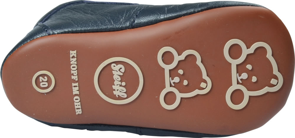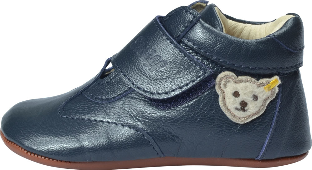 Hochwertige Glattleder-Lauflernschuhe von Anfang an. Diese knöchelhohen Schuhe mit praktischem Klettverschluss für Jungen in navy von STEIFF sitzen perfekt am Fuß. An der Seite mit dem kleinen STEIFF Bären. Mit herausnehmbarer Innensohle.