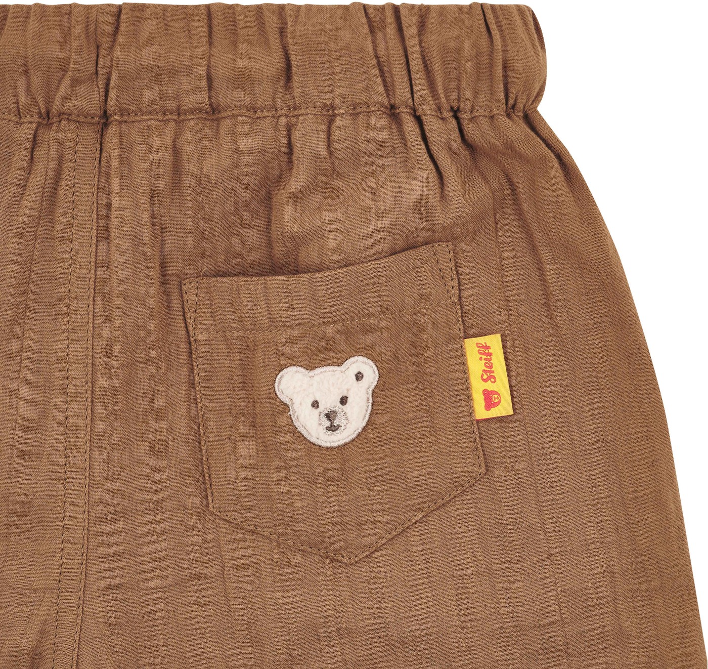 Natürlich darf der neue und modernisierte Steiff-Teddybär als Patch auf der Gesäßtasche nicht fehlen! 🧸