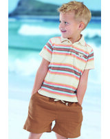 Steiff Frottee-Poloshirt aus Baumwolle mit Streifen - Eggnog