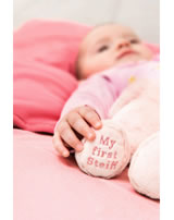 Die 26 cm große, kuschelweiche Soft Cuddly Friends My first Steiff Hoppie Hase freut sich mit dem Neuankömmling und schmiegt sich an seine Wange. Die Händchen spüren den babysanften Plüsch, die bestickte Hasensohle und die Granulatsäckchen in Armen, Beinen und Gesäß. Sie fühlen den Mund, das Näschen, die Augen, und die langen Ohren... Soft Cuddly Friends My first Steiff Hoppie Hase in Rosa ist ein liebevolles Geschenk für den Start ins Leben!