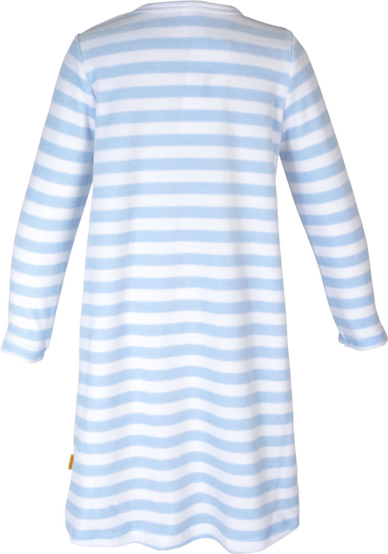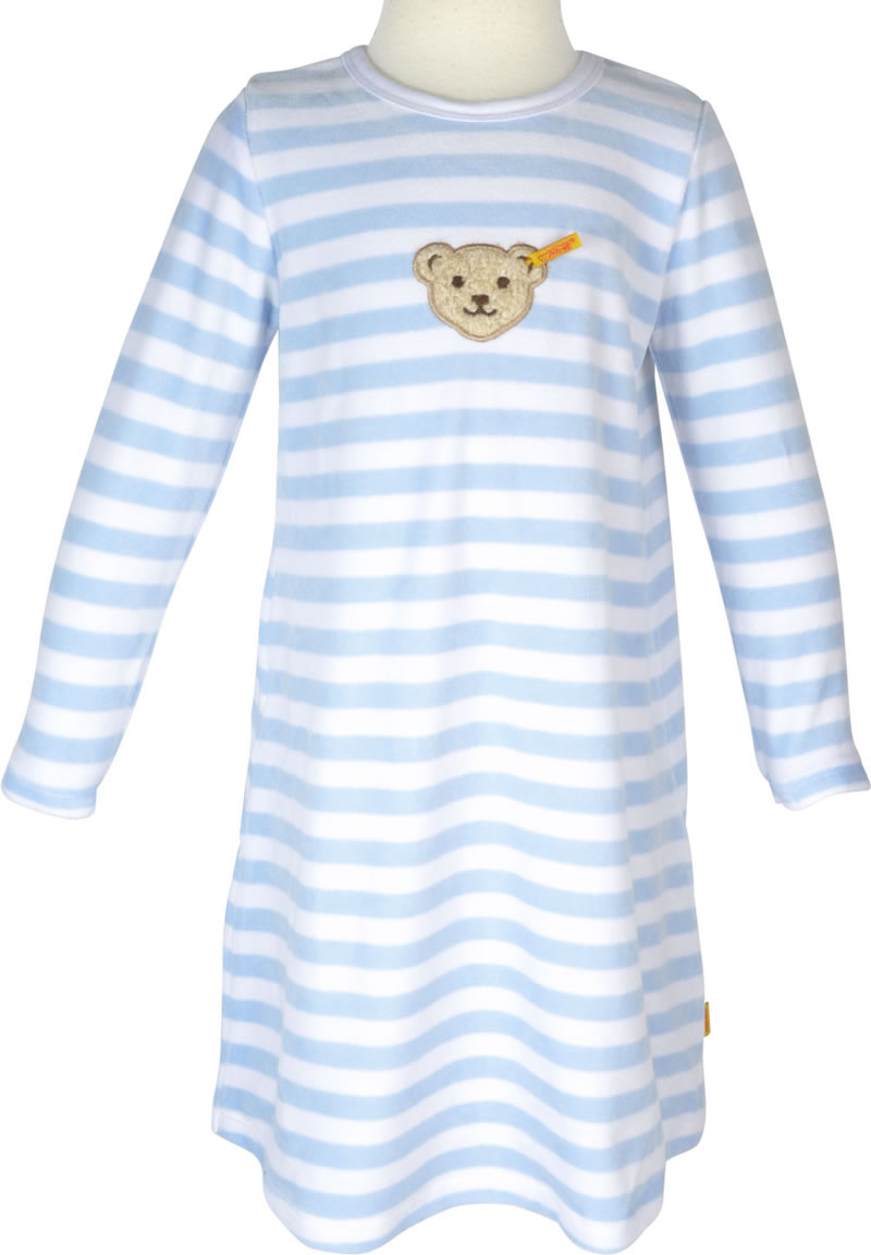 Ein kuschelweiches Nicki-Nachthemd in baby blue für die kühleren Nächte. Eine süße STEIFF Plüschbärchen-Applikation ziert die Vorderseite.