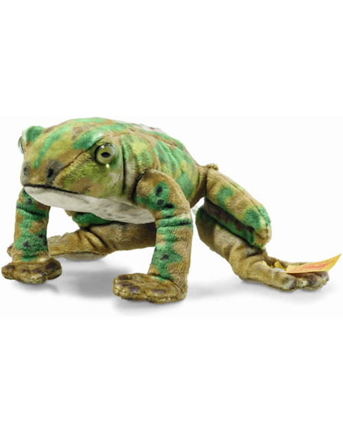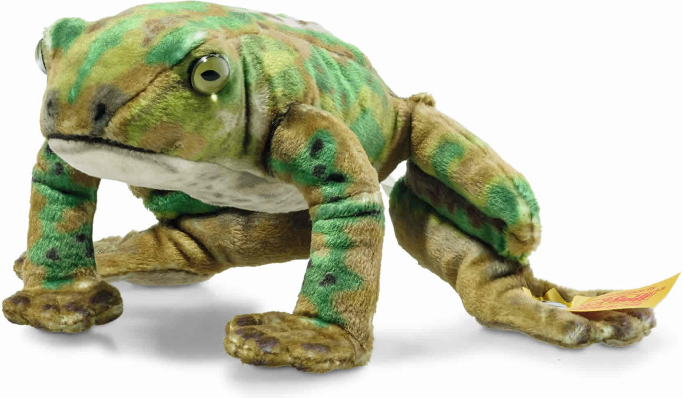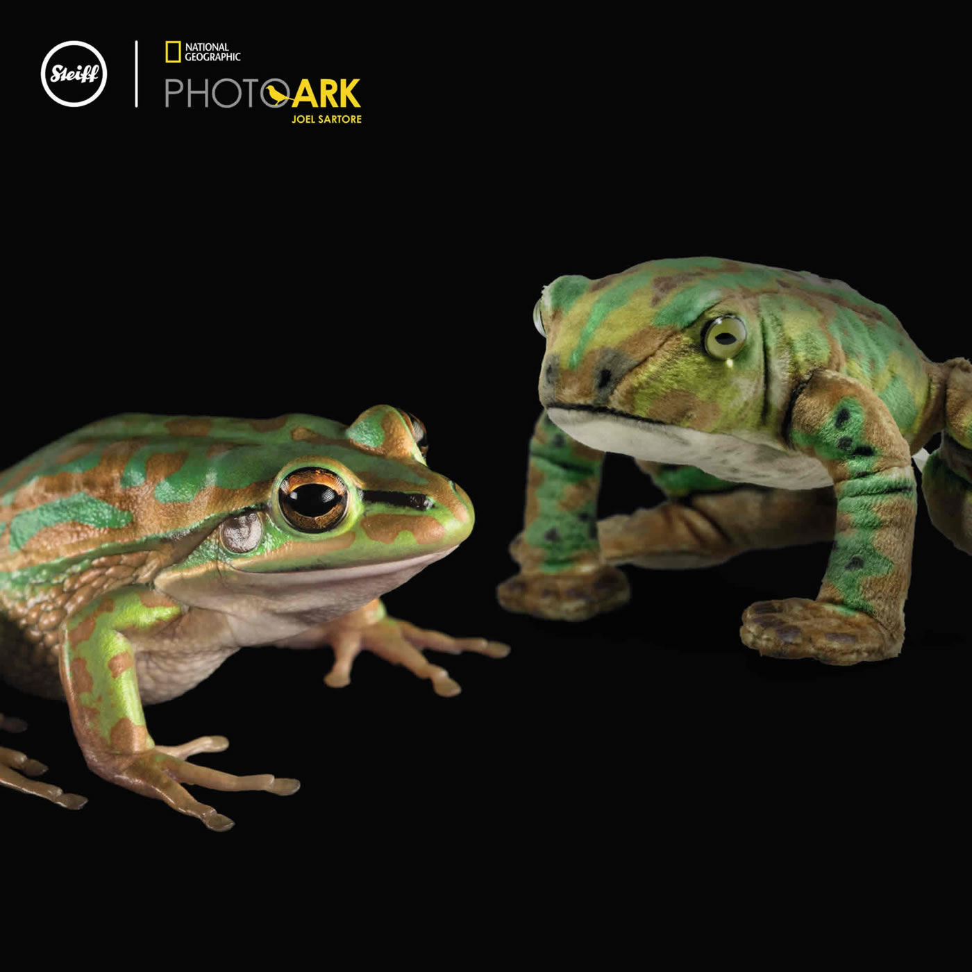 Schützen Sie gemeinsam mit uns die Artenvielfalt. In Zusammenarbeit mit National Geographic wurde eine besondere Plüschtierkollektion ins Leben gerufen, um Maßnahmen zur Wahrung der Artenvielfalt zu unterstützen. Die Kollektion umfasst Tiere, die für das Artenschutzprojekt National Geographic Photo Ark von Joel Sartore fotografiert wurden. Er fotografiert gefährdete Tierarten weltweit, bevor diese aussterben. Ihr Kauf unterstützt einen guten Zweck! Die Erlöse aus dem Verkauf aller National Geographic Produkte unterstützen Wissenschaftler, Entdecker und Forscher der National Geographic Society auf der ganzen Welt. Der grüne und goldene Glockenfrosch ist als stark gefährdet eingestuft. Hier wird diese Art durch Froggy Frosch repräsentiert. Seine Familie ist in Australien und Neuseeland beheimatet. Er will der mahnende Botschafter seiner Art sein. Froggy Frosch ist 12 cm groß und aus kuschelweichem Plüsch gefertigt. Das Froschmaul und die Nasenlöcher wurden in Airbrushtechnik braun gemalt. Die typische Farbkombination, die ihm den Namen gab, ist auf den Plüschstoff gedruckt. Durch die Absteppung auf allen vier Füßen sind Zehen angedeutet. Da die Population dieser Tierart innerhalb der letzten zehn Jahre um etwa 30 Prozent zurückgegangen ist, hat Froggy Frosch die Aufgabe Aufmerksamkeit für diese Problematik zu schaffen.