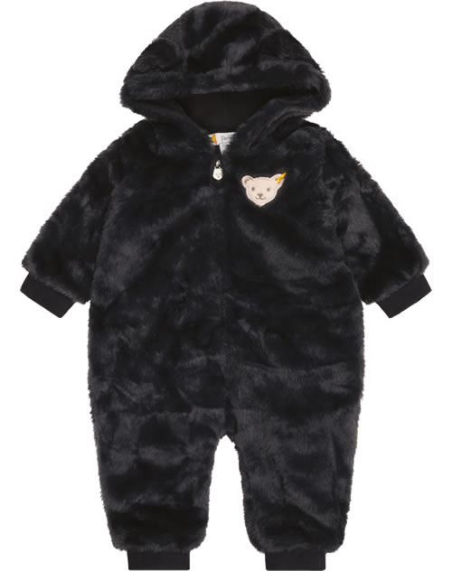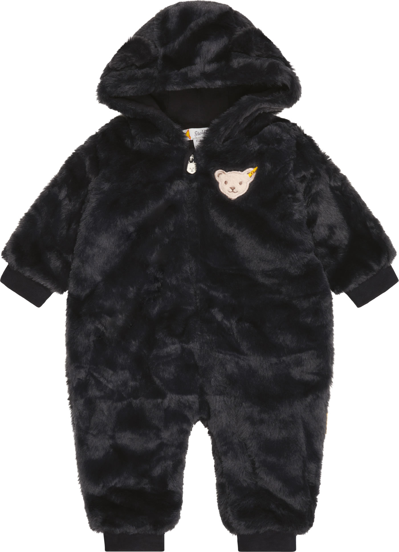 Der gefütterte Overall aus Teddyplüsch mit Kapuze aus der Classic-Kollektion von STEIFF ist ein toller Begleiter für die kühleren Tage. Außen ist er kuschelweich und innen ist der Overall mit einem weichen Baumwoll-Jersey gefüttert. Mit einem extralangen Reißverschluss ist das An- und Ausziehen ein Kinderspiel. Besonders schöne Details sind der kleine STEIFF Bär auf der Brust und die Bären-Ohren an der Kapuze.