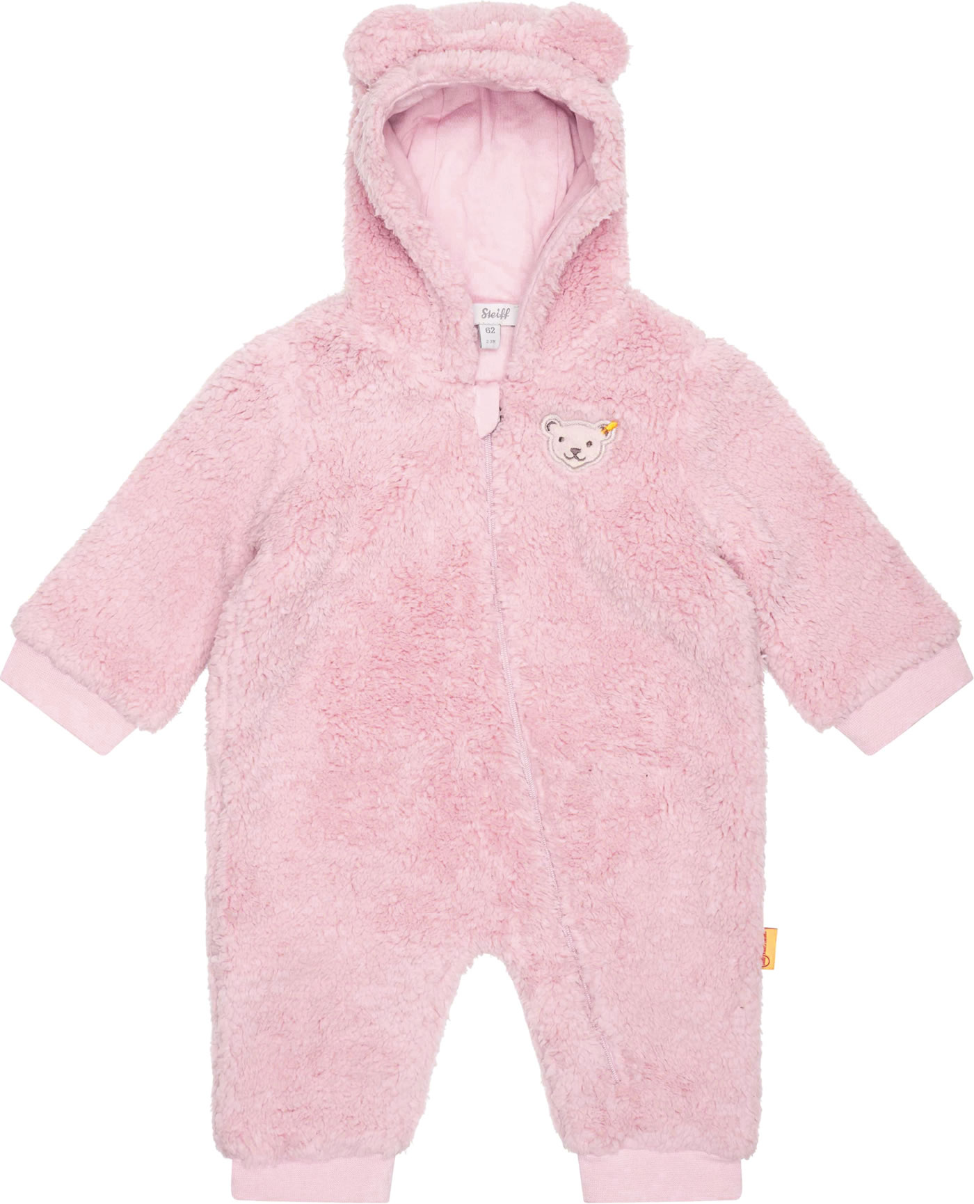 Der gefütterte Overall aus Teddyplüsch mit Kapuze aus der Classic-Kollektion von STEIFF ist ein toller Begleiter für die kühleren Tage. Außen ist er kuschelweich und innen ist der Overall mit einem weichen Baumwoll-Jersey gefüttert. Mit einem extralangen Reißverschluss ist das An- und Ausziehen ein Kinderspiel. Besonders schöne Details sind der kleine STEIFF Bär auf der Brust und die Bären-Ohren an der Kapuze.