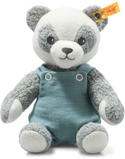 Steiff Panda Paco 26 cm grau/weiß/petrol GOTS