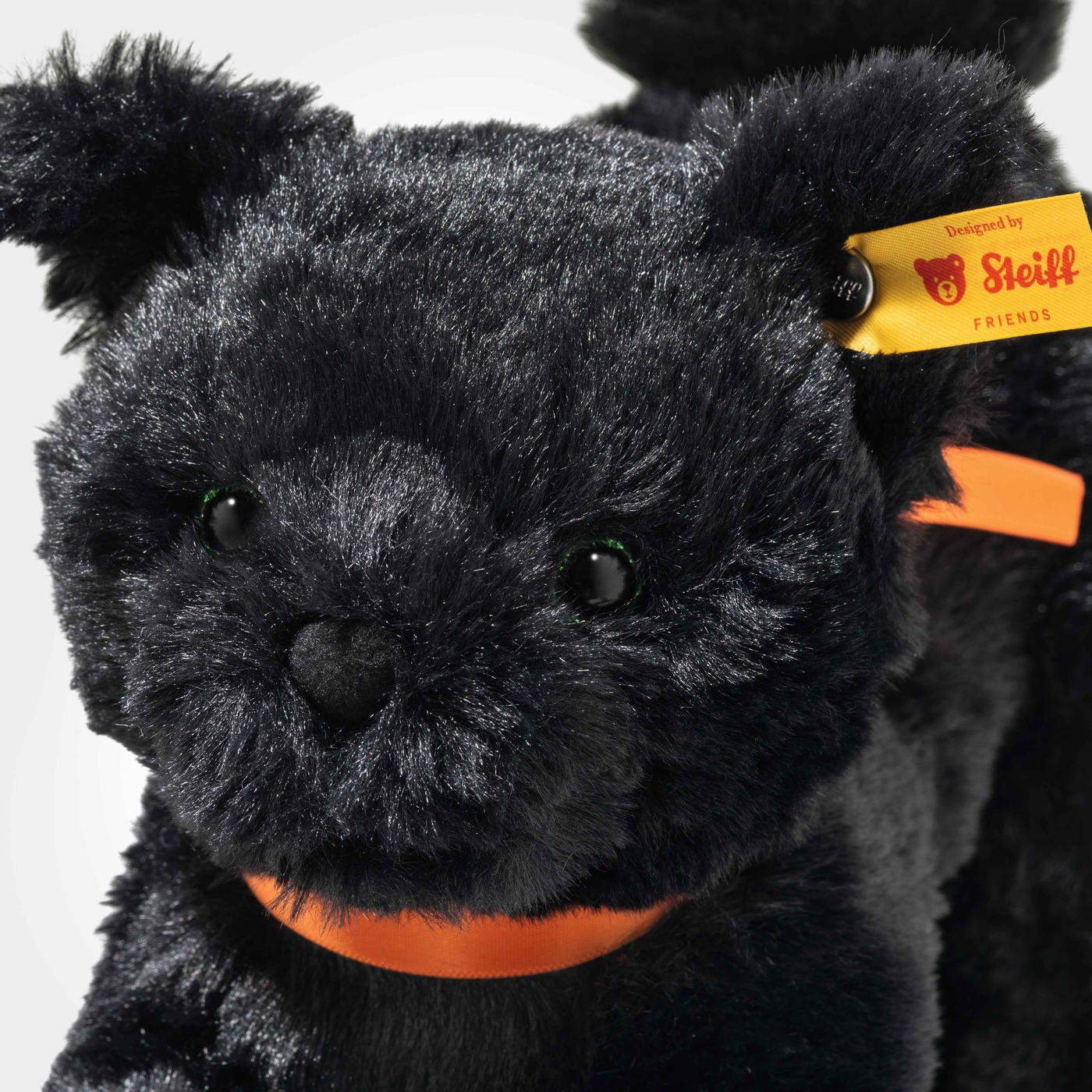 Inspiriert von den kultigen Steiff Mohair Spooky Katze, schleicht sich diese schwarze Schönheit ins Friends-Sortiment. Die 22 cm große Spooky Katze erschreckt sich mit ihrem Katzenbuckel und dem flauschig aufgestellten Schwanz genau so schaurig-schön wie ihre traditionellen Vorgängerinnen. Das kuschelweiche Samtpfötchen blitzt uns aus grün glitzernden Augen an, und die kürbisfarbene, orange Schleife um den Hals bildet einen schönen Kontrast zum nachtschwarzen Fell. Granulatsäckchen in Vorder- und Hinterbeinen sorgen für einen sicheren Stand. Ein idealer Begleiter für Halloween, der die gruselige Atmosphäre perfekt ergänzt!