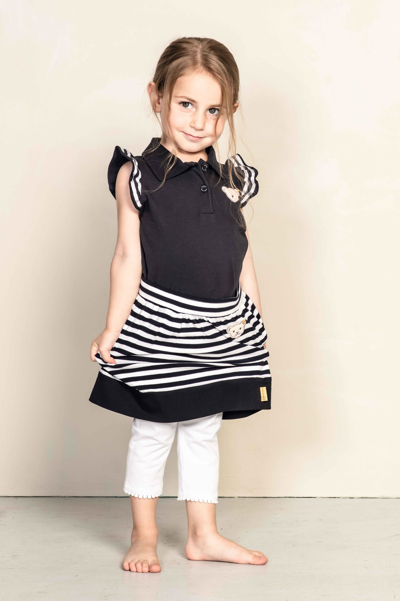 Polo-Shirt für Mädchen aus der Beach Please-Kollektion von STEIFF. Dank der Knopfleiste am Halsausschnitt wird das An- und Ausziehen zum Kinderspiel. Schöne Details sind die gestreiften Flügelarme und der STEIFF Bär auf der Brust.