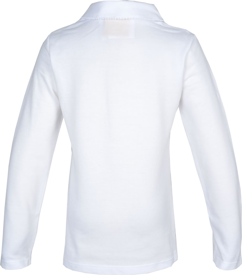Hübsches Langarm-Polo-Shirt mit Bubi-Kragen von STEIFF für Mädchen. Der Kragen mit Mäusezähnchen ist ein schönes Detail, ebenso wie die Knopfleiste mit den Knöpfen in weiß. Ein kleiner Steiff-Bär Patch ziert die linke Seite der Brust. Das Poloshirt kann solo oder mit einer Jacke oder einem Pullover getragen werden, es macht immer eine gute Figur und sieht zugleich klassisch elegant aus. Das weiche Material sorgt zusätzlich für einen angenehmen Tragekomfort.