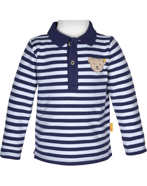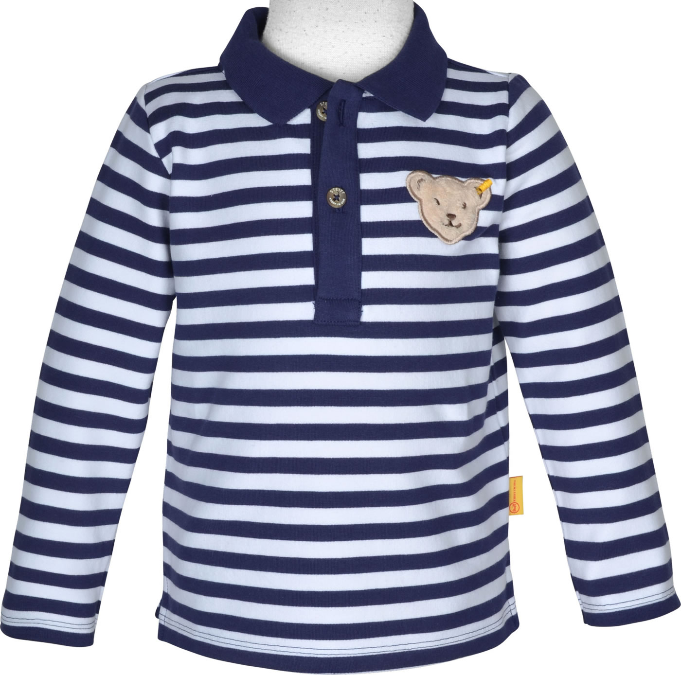 Gestreiftes Polo-Shirt mit langen Ärmeln von STEIFF für Jungen aus der Red and Blue-Kollektion. Der kleine STEIFF Bär ziert die linke Brust. Innen ist das Polo-Shirt weich angeraut und dadurch kuschelig und warm. Der klassische Kragen mit der Knopfleiste macht das sportliche Langarm-Shirt ausgehfein.