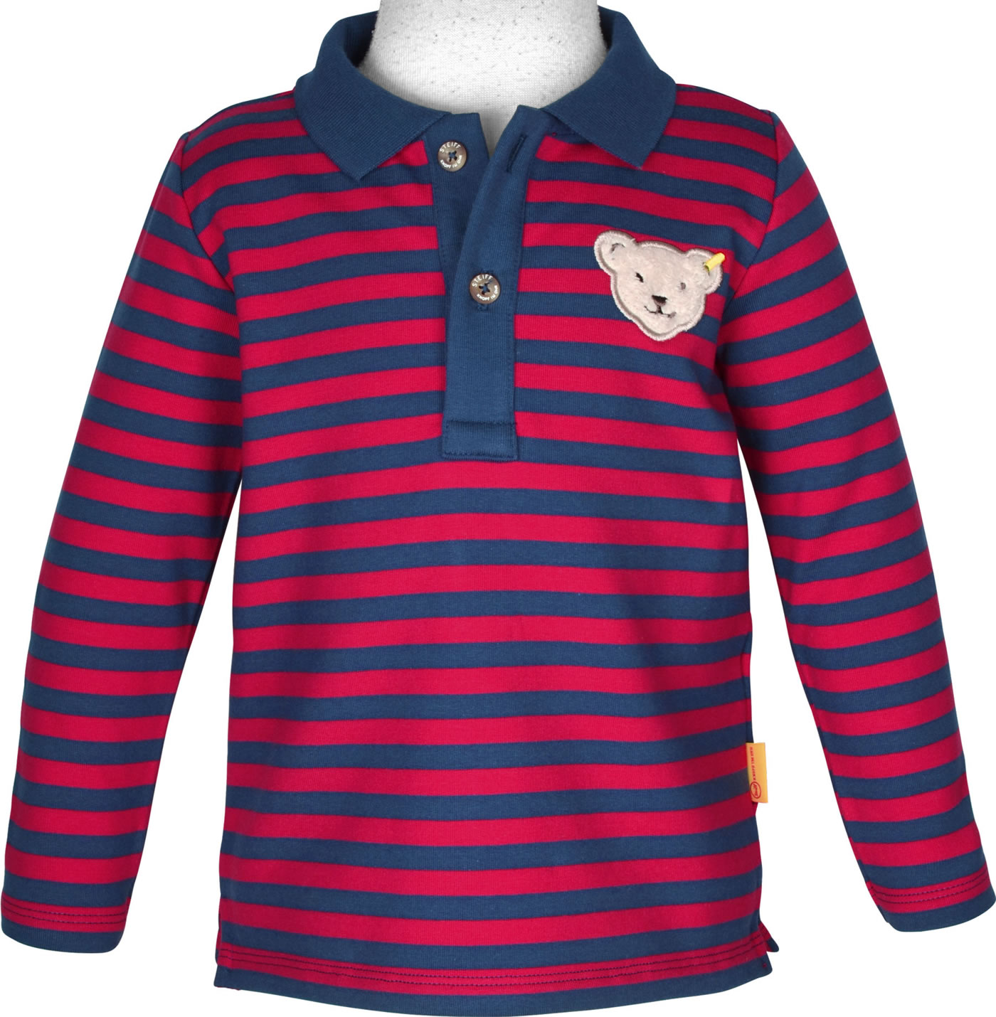 Gestreiftes Polo-Shirt mit langen Ärmeln von STEIFF für Jungen aus der Red and Blue-Kollektion. Der kleine STEIFF Bär ziert die linke Brust. Innen ist das Polo-Shirt weich angeraut und dadurch kuschelig und warm. Der klassische Kragen mit der Knopfleiste macht das sportliche Langarm-Shirt ausgehfein.