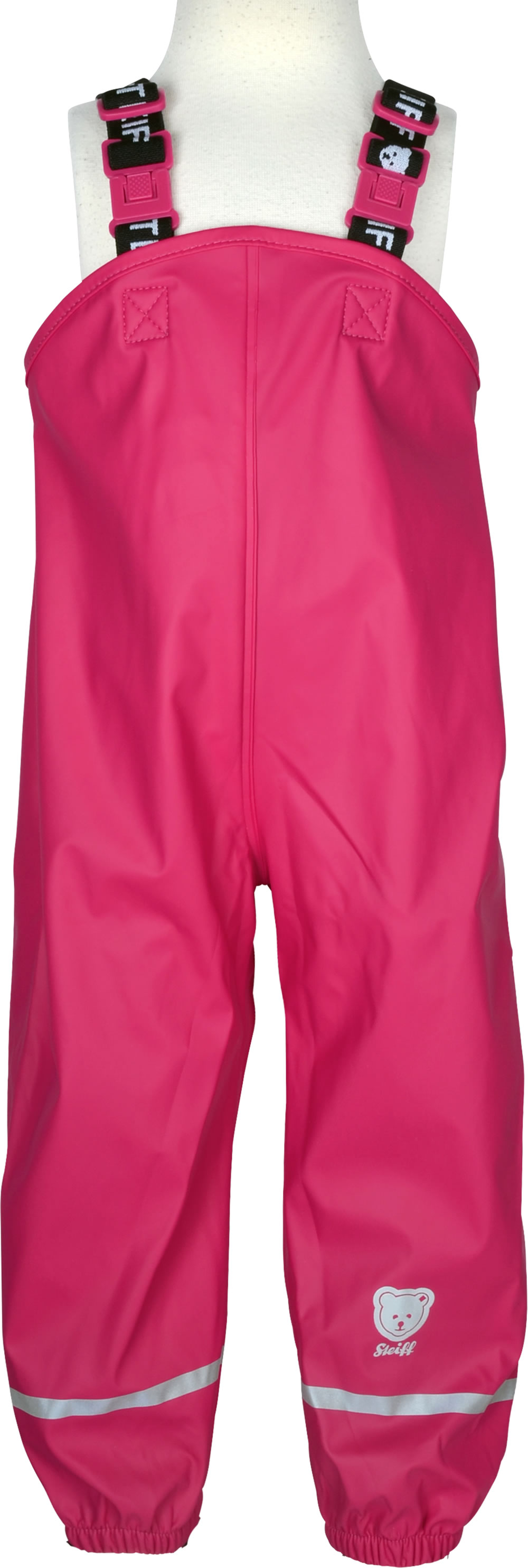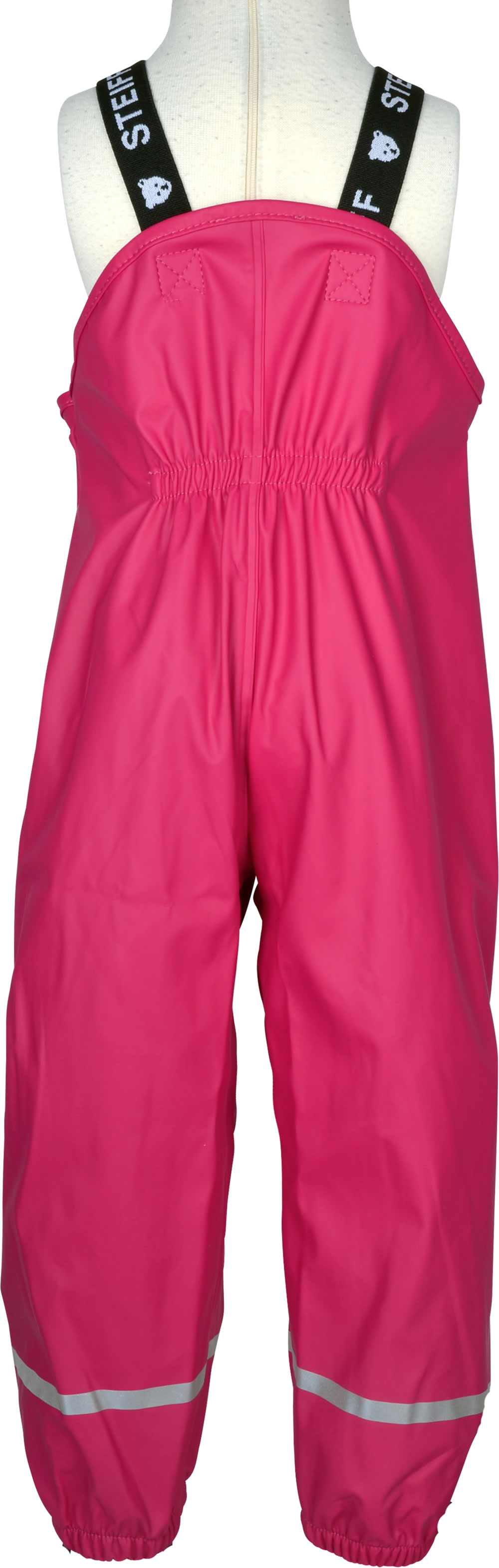 Die strapazierfähige Regenhose von STEIFF schützt Mädchen optimal vor Wind und Regen. Elastische Träger bieten eine große Bewegungsfreiheit und die Gummischlaufen am Beinabschluss sorgen für einen sicheren Sitz am Fuß. Ein Gummibündchen in der Taille und Druckknöpfe an den Seiten sorgen für einen optimalen Sitz. Reflektorbänder an den Beinen und der reflektierende STEIFF-Bär sorgen zudem für gute Sichtbarkeit im Dunkeln.