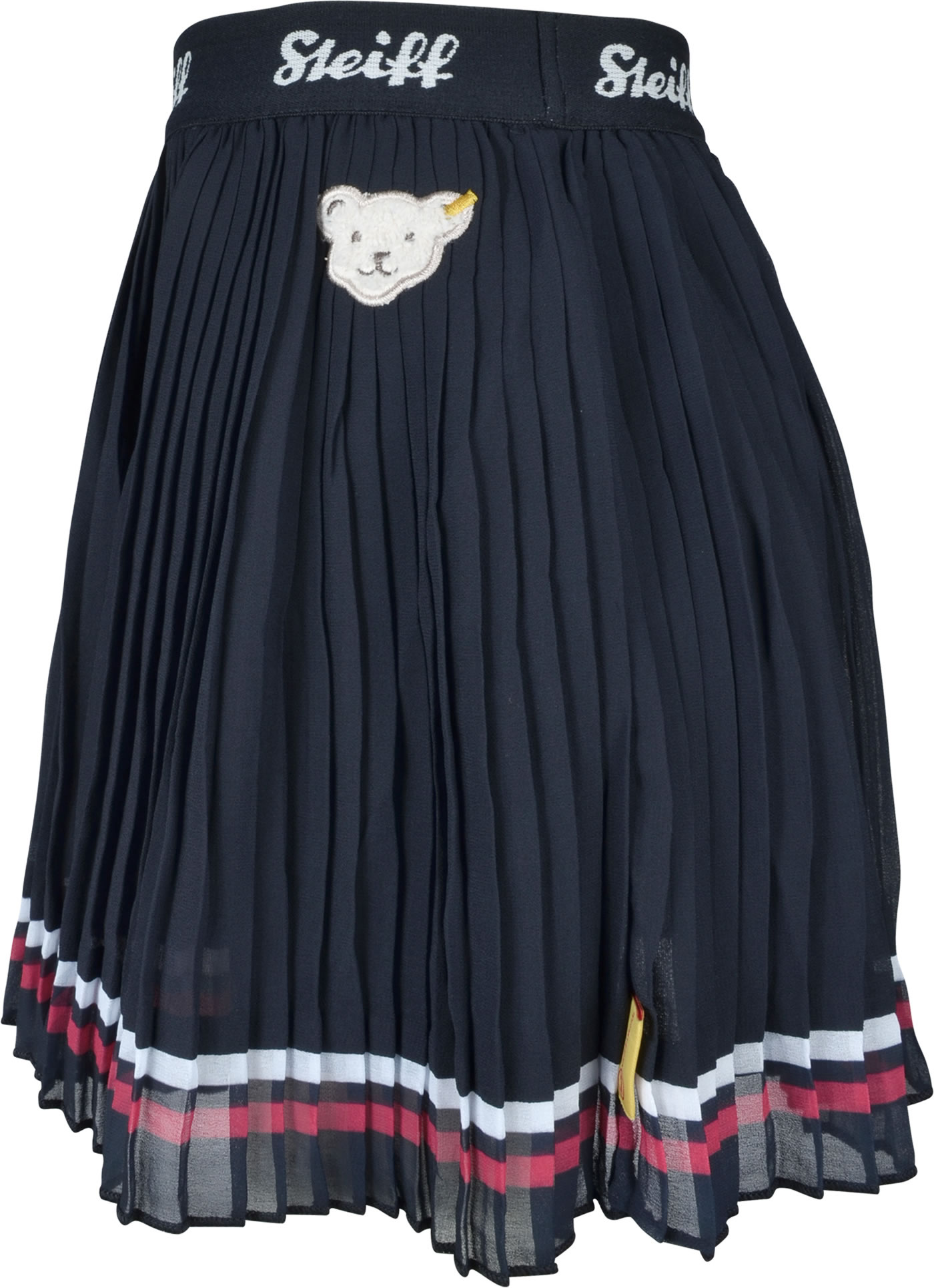 Festlicher Rock mit Plissee von STEIFF für Mädchen aus der Bear to School-Kollektion. Der Rock ist weit ausgestellt und der kleine STEIFF Bär ziert die linke Seite. Durch den Gummizugbund ist er bequem. Mit Unterrock.