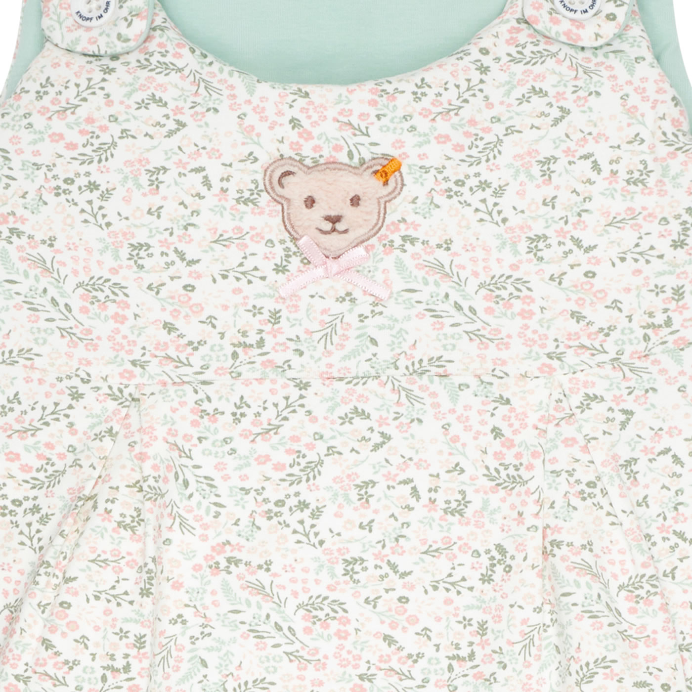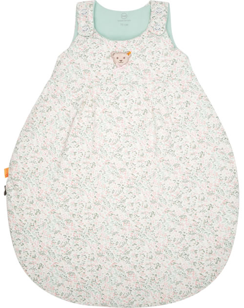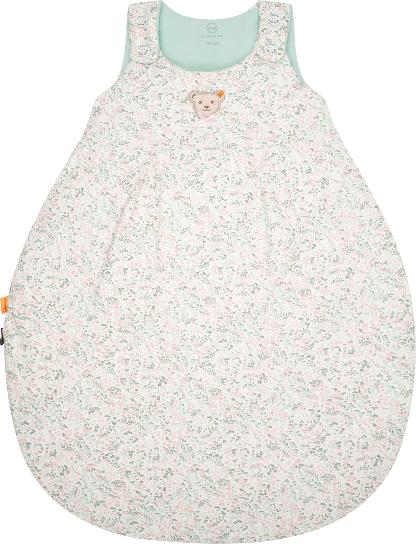 Der ideale Begleiter für das Baby - kuschelig weicher Schlafsack für Mädchen aus der Jungle Feeling-Kollektion von STEIFF. Der Schlafsack wird schnell zu einem Lieblingsstück. Die Innenseite ist mit hellgrünem Futter ausgestattet. Die Brust ziert der kleine STEIFF Bär. Knöpfe auf der Schulter und ein umlaufender Reißverschluss, der sich ganz öffnen läßt, erleichtern das An- und Ausziehen. Der birnenförmige Schlafsack aus weichem Baumwoll-Jersey ist schön breit und bietet dadurch viel Strampelfreiheit.