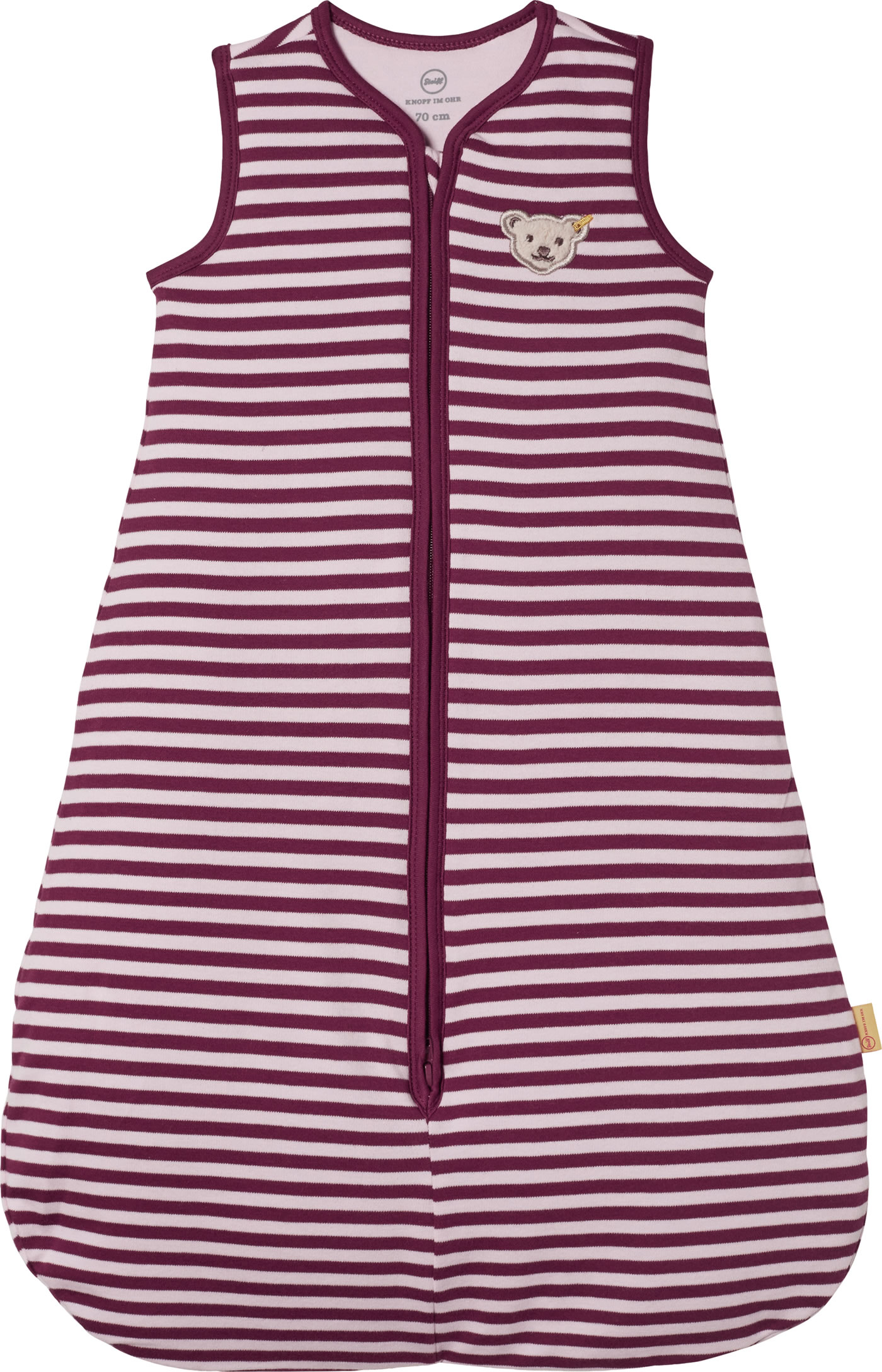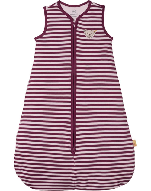 Der ideale Begleiter für das Baby - kuschelig weicher Schlafsack für Mädchen aus der Rose Denim-Kollektion von STEIFF. Der pink-rosa gestreifte Schlafsack wird schnell zu einem Lieblingsstück. Die Innenseite ist rosa gefüttert. Die linke Brust ziert der kleine STEIFF Bär. Der Reißverschluss ist am Hals mit einem Kinnschutz versehen.