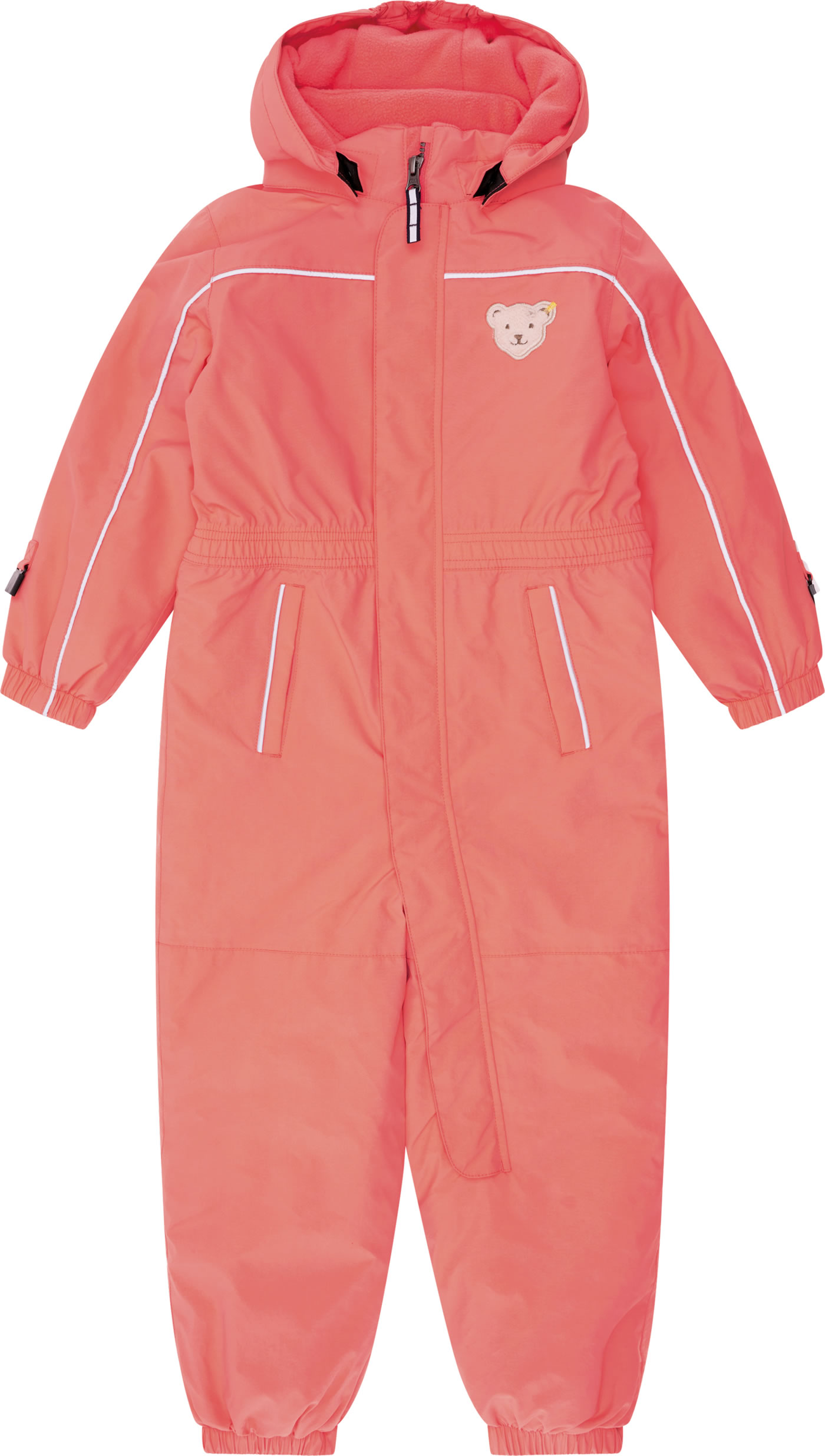 Warmer, atmungsaktiver Schneeanzug mit abnehmbarer, ergonomischer Kapuze von STEIFF. Die atmungsaktive BIONIC-FINISH ECO-Imprägnierung ist fluorfrei und macht den Schneeoverall wasser- und schmutzabweisend. Der Schneeanzug hat zwei seitliche Eingrifftaschen mit Klettverschluss vorn, sowie Reflektorstreifen für eine bessere Sichtbarkeit. Das Gummibündchen in der Taille sorgt für einen guten Sitz und Fußstege verhindern ein Hochrutschen. Der kleine STEIFF Bär ziert die Brust und befindet sich als reflektierendes Element auf der Rückseite.