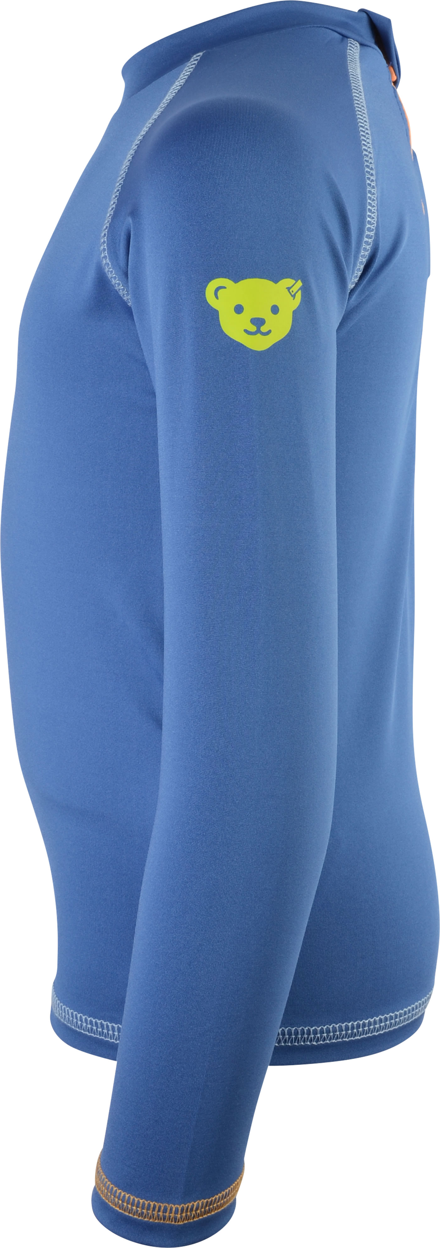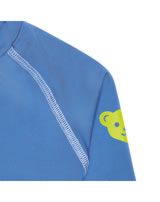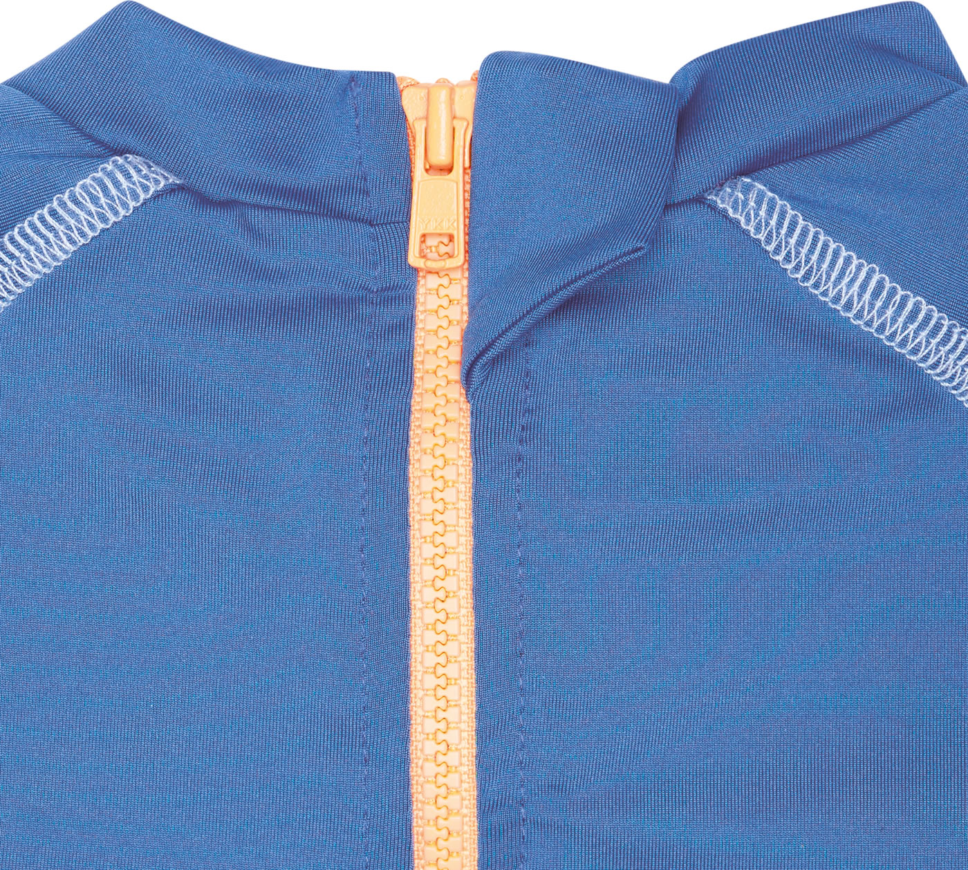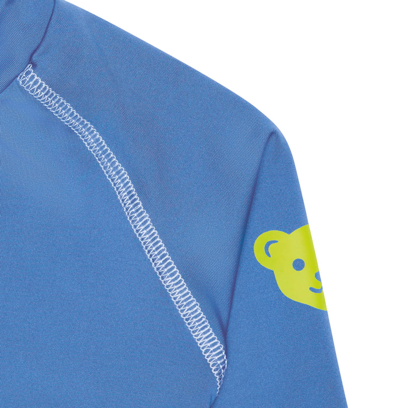 Schwimm-Shirt mit langen Ärmeln für Jungen von STEIFF. Mit diesem Shirt läßt sich die Sonne sorgloser genießen und nach dem Baden ist es schnell wieder trocken. Schöne Details sind die farblich unterschiedlichen Nähte und der STEIFF Bär auf dem linken Ärmel. Der Reißverschluss befindet sich auf der Rückseite. Das Material bietet Sonnenschutz mit UPF 50+.