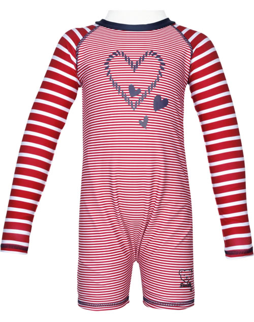 Steiff Schwimmanzug Badeoverall NAVY HEARTS tango red