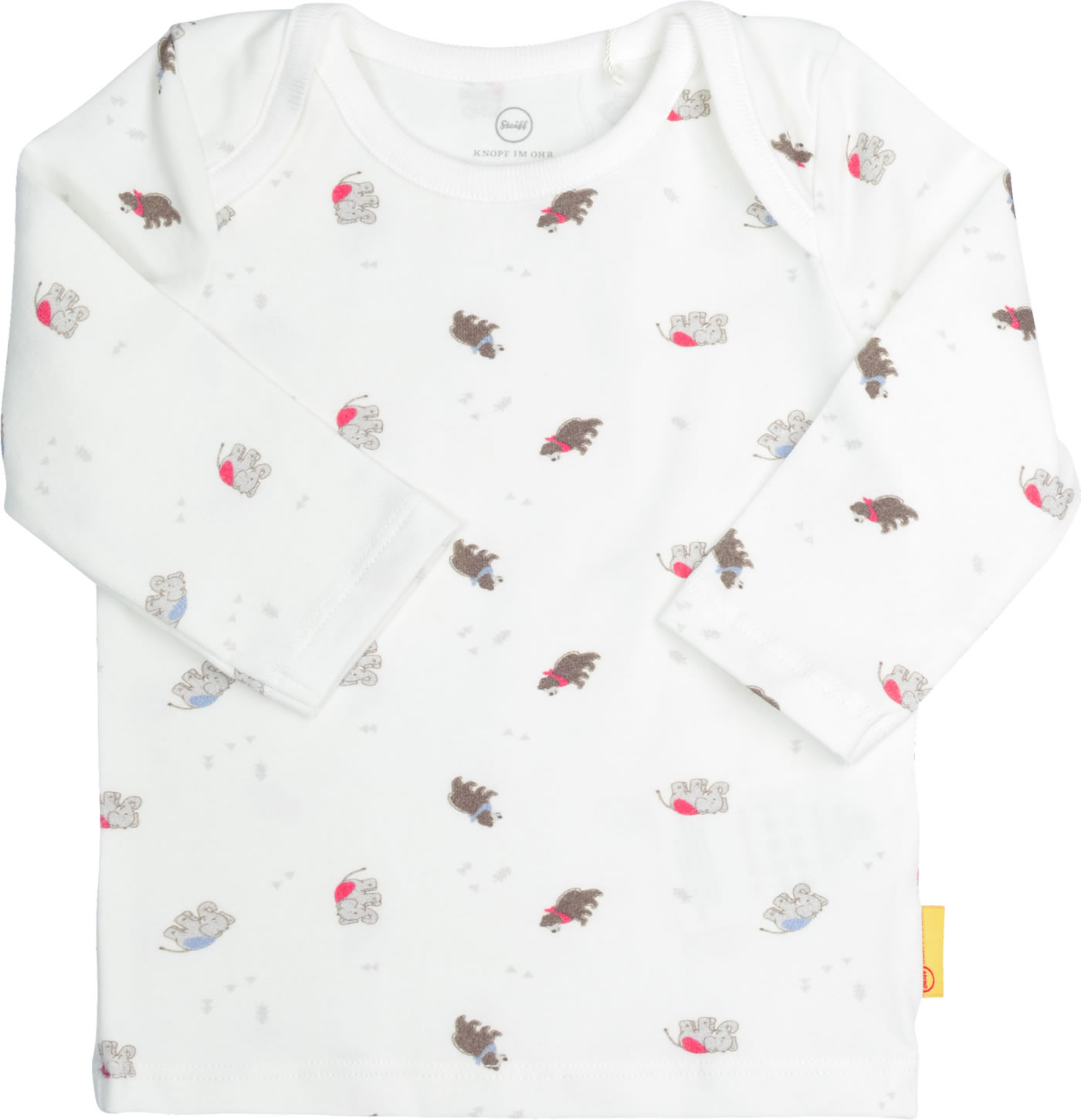 Elefäntle und Teddybär, die Symbolfiguren der Anfangsjahre, finden sich auf dem Langarm-Shirt wieder. Und der flauschige STEIFF Bär auf der Brust darf natürlich auch nicht fehlen.