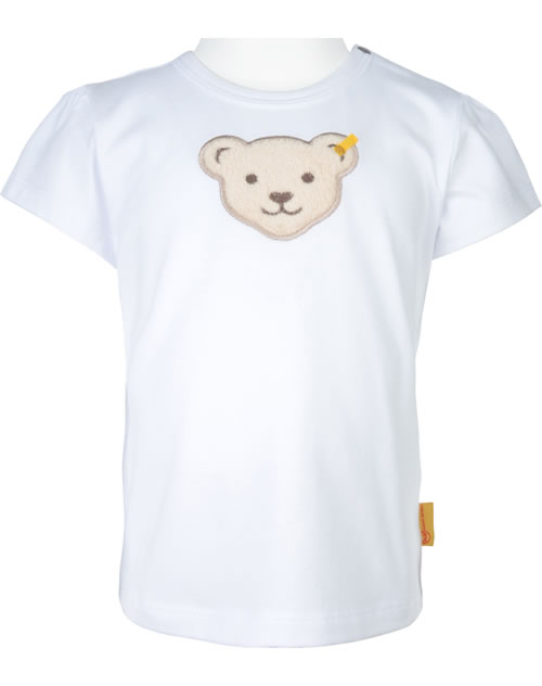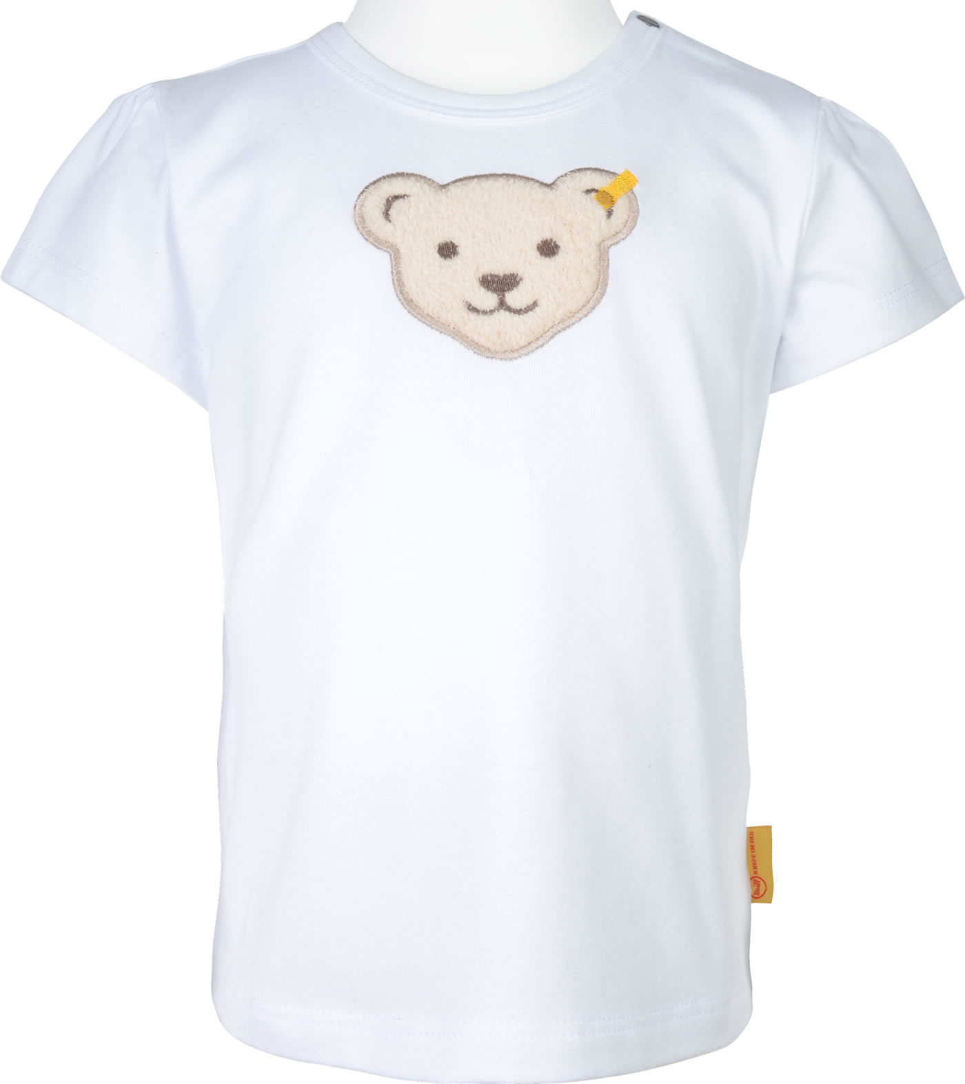 Kurzarmshirt aus weichem Jersey für Mädchen aus der Beach Please Kollektion von STEIFF. Schöne Details sind der große STEIFF Bär auf der Vorderseite und die gerafften Ärmel.