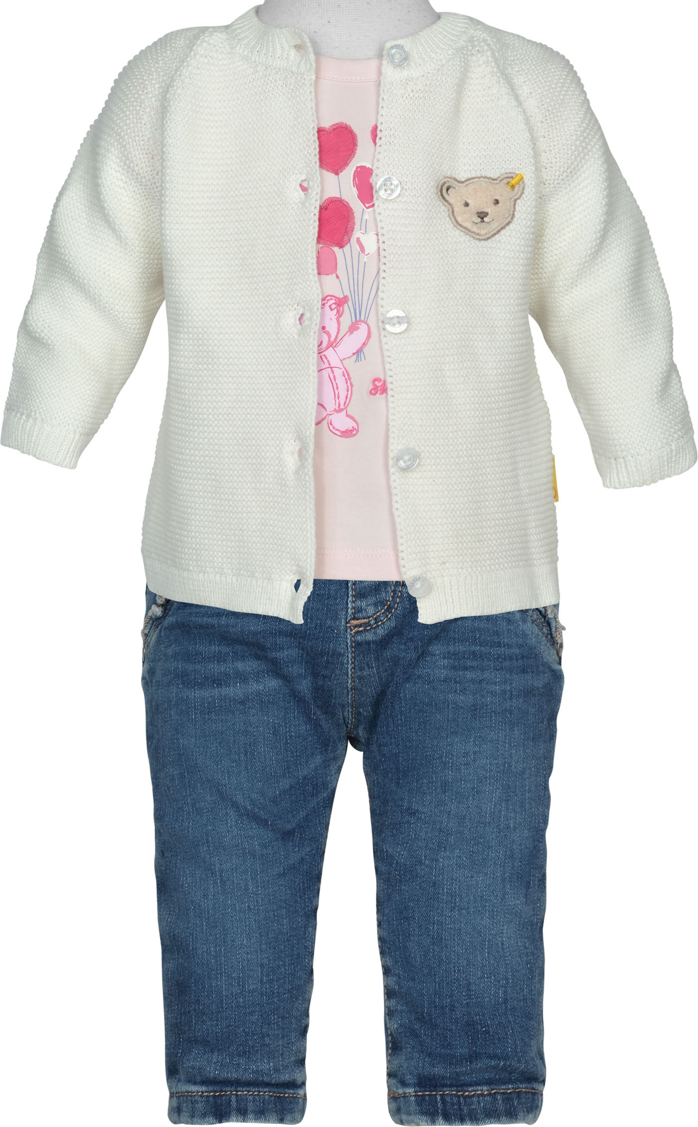 Kombinationsempfehlung: Auf dem Detailbild zusammen mit den Artikeln Steiff Strickjacke BEAR IN MY HEART cloud dancer 2011107-1001 CLOUD DANCER (St20111071001) und Steiff Jeanshose BEAR IN MY HEART blue indigo 2011106-6050 BLUE INDIGO (St20111066050).