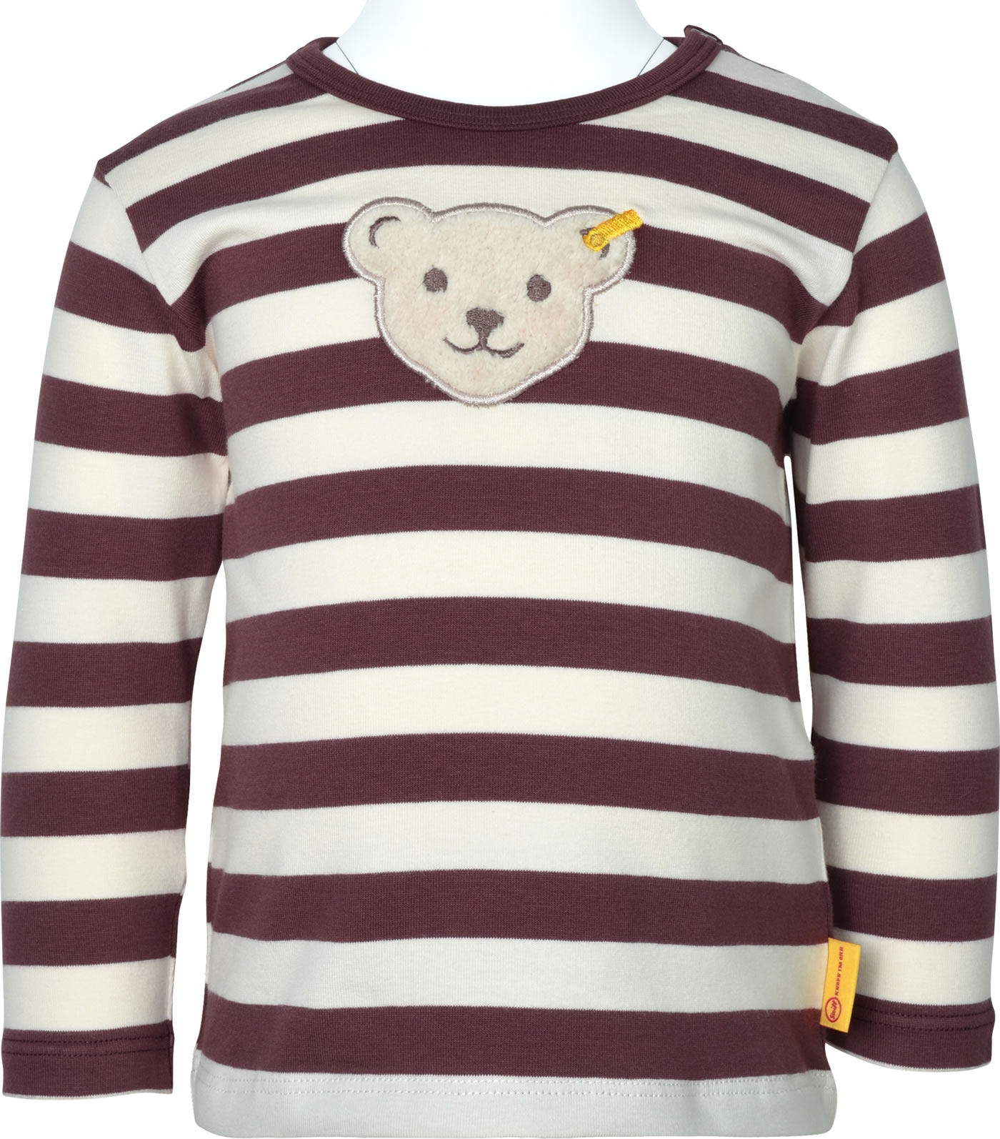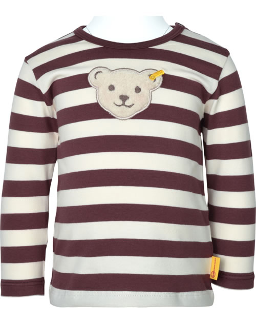 Gestreiftes Langarm-Shirt für Jungen aus der Dragon's Fire-Kollektion von STEIFF. Der STEIFF Bär ziert die Vorderseite. Druckknöpfe auf der Schulter helfen beim An- und Ausziehen.