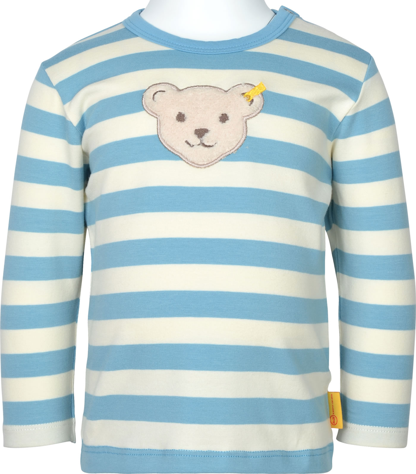 Gestreiftes Langarm-Shirt für Jungen aus der Dragon's Fire-Kollektion von STEIFF. Der STEIFF Bär ziert die Vorderseite. Druckknöpfe auf der Schulter helfen beim An- und Ausziehen.