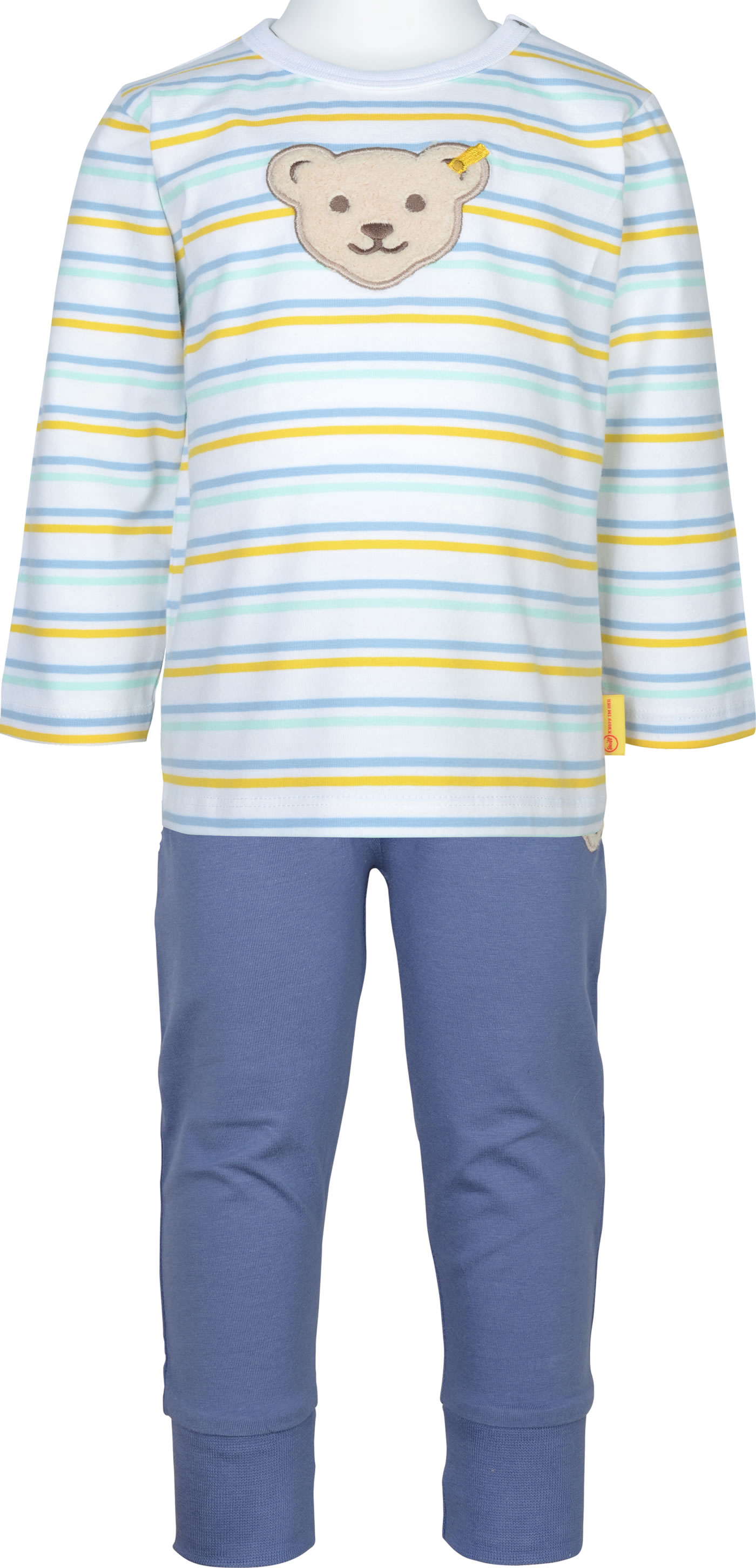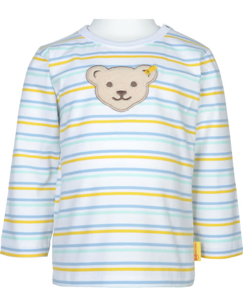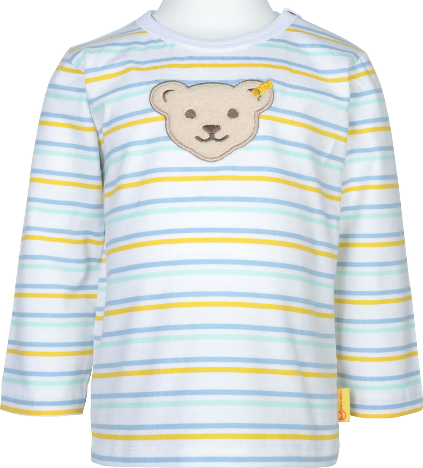 Gestreiftes Langarm-Shirt für Jungen aus der Elephant Ride-Kollektion von STEIFF. Ein toller Hingucker ist der STEIFF Bär auf der Vorderseite. Druckknöpfe auf der Schulter erleichtern das An- und Ausziehen.
