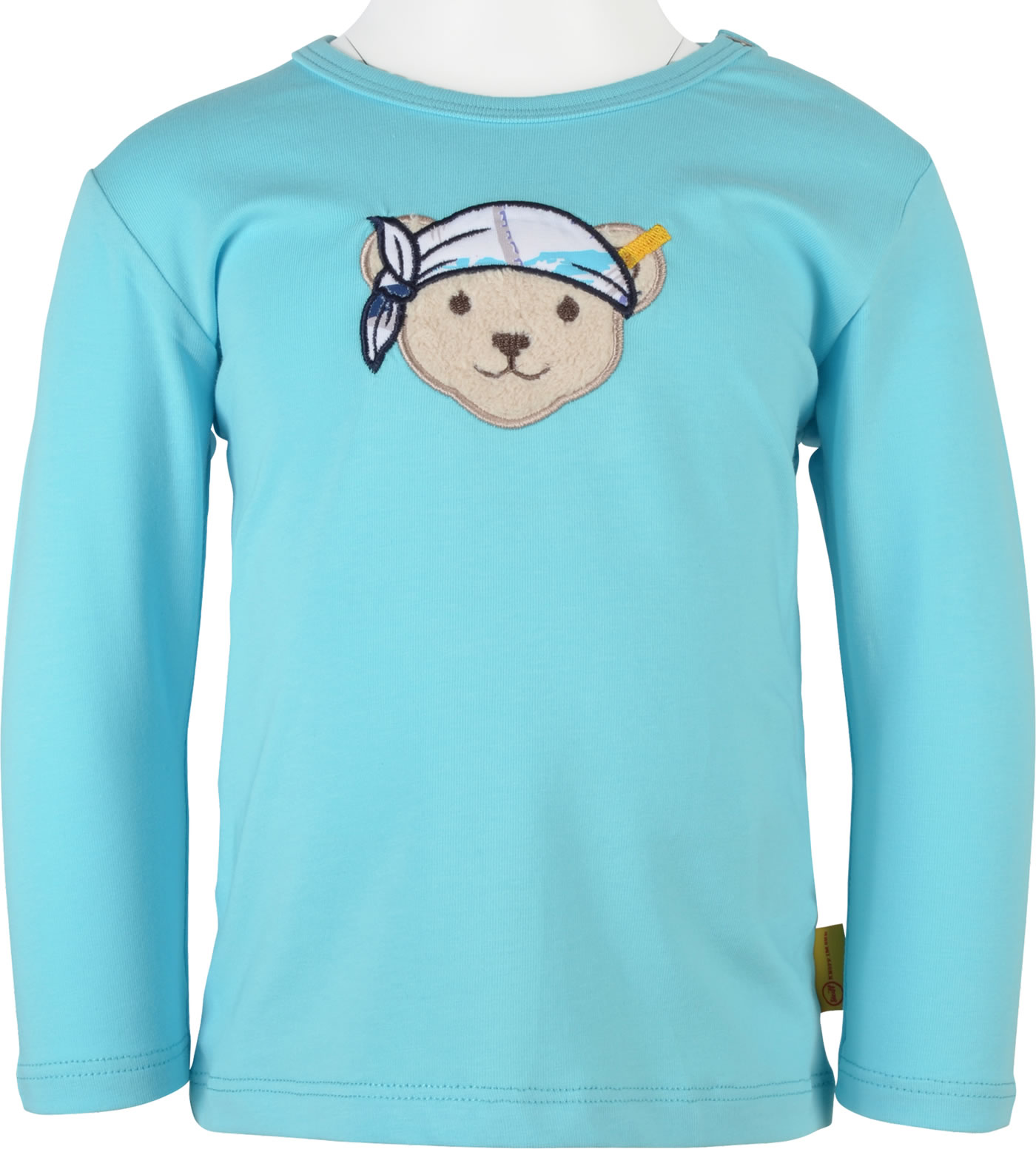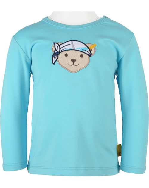 Langarm-Shirt für Jungen aus der Happ Hippo-Kollektion von STEIFF. Der STEIFF Bär ziert die Vorderseite. Druckknöpfe auf der Schulter helfen beim An- und Ausziehen.