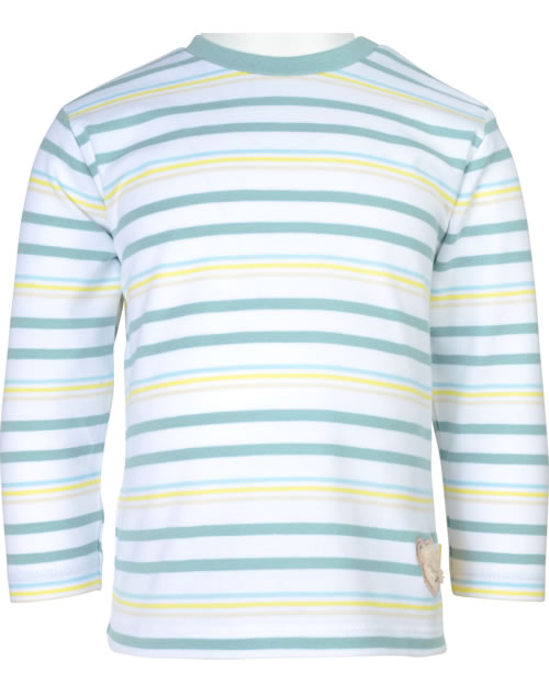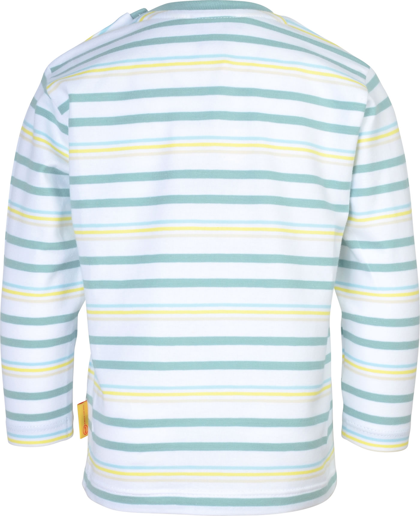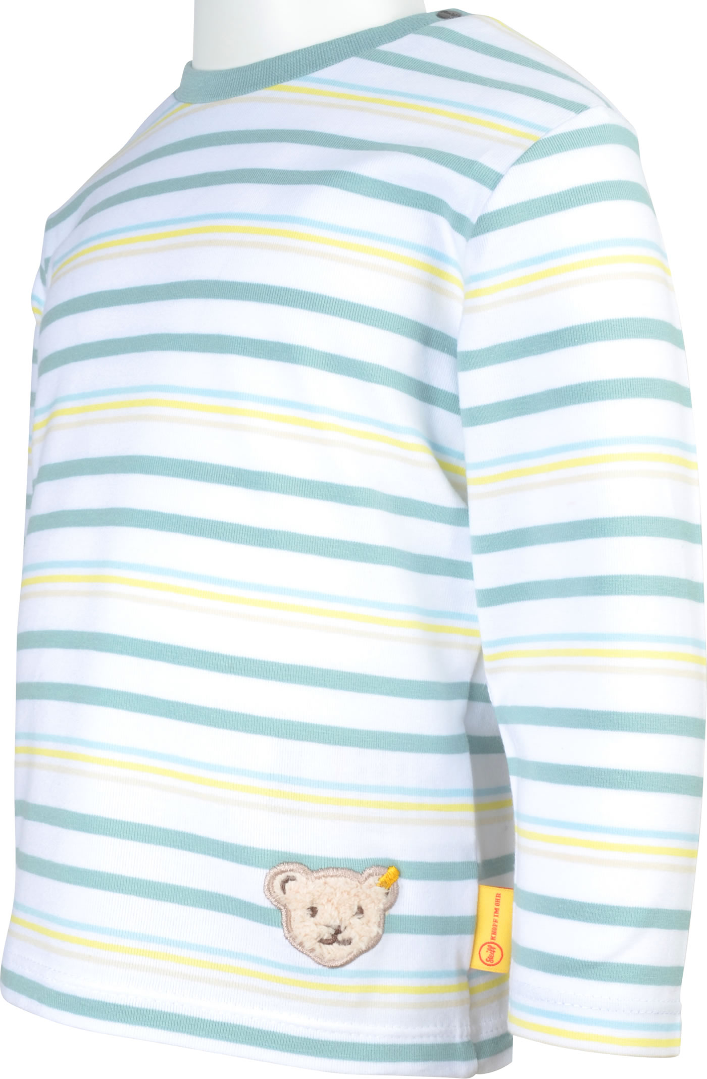 Langarm Shirt in Streifen-Optik für Jungen aus der Lazy Nils-Kollektion von STEIFF. Der STEIFF Bär ziert die Vorderseite. Druckknöpfe auf der Schulter helfen beim An- und Ausziehen.
