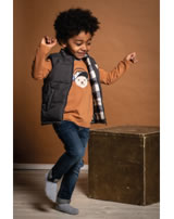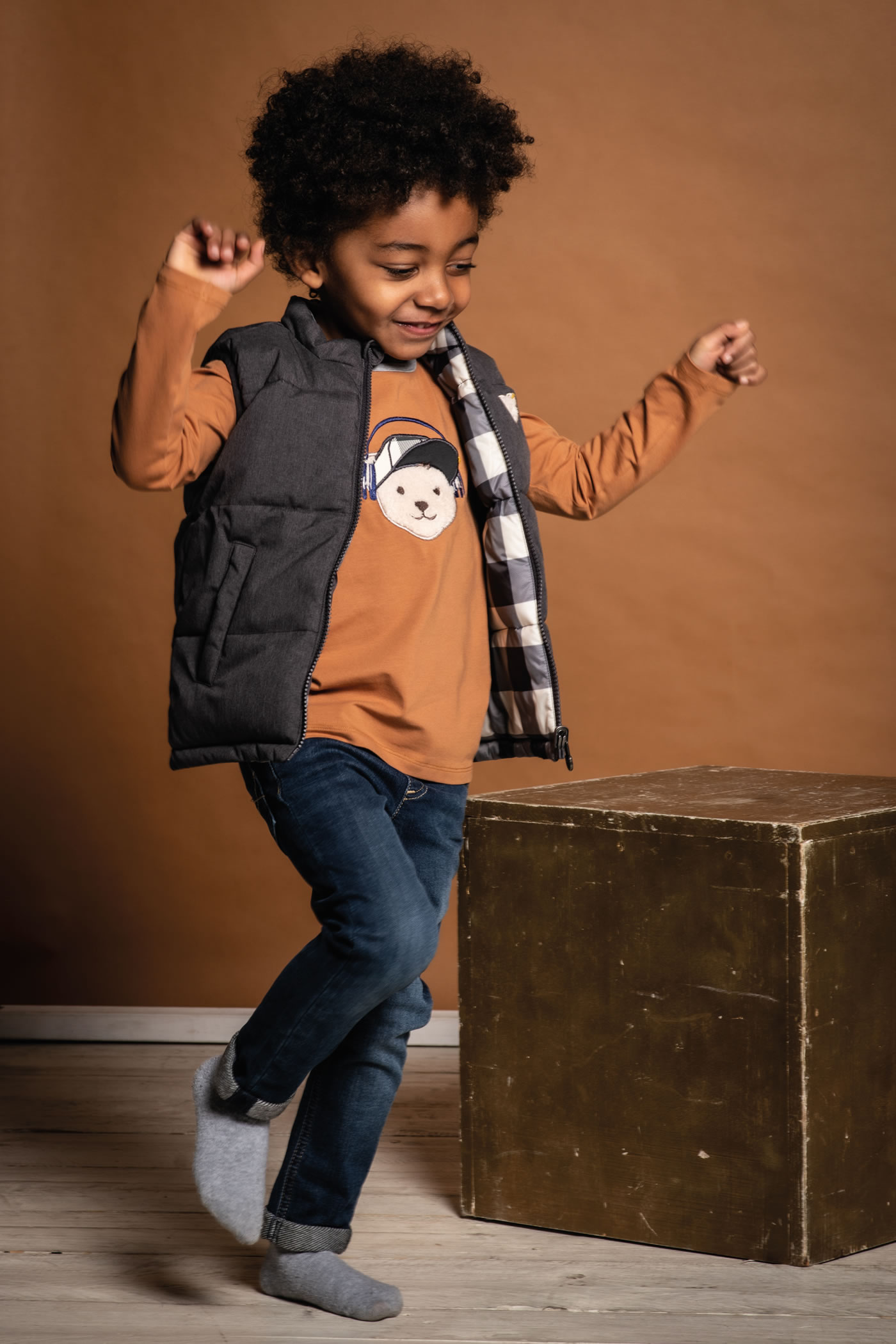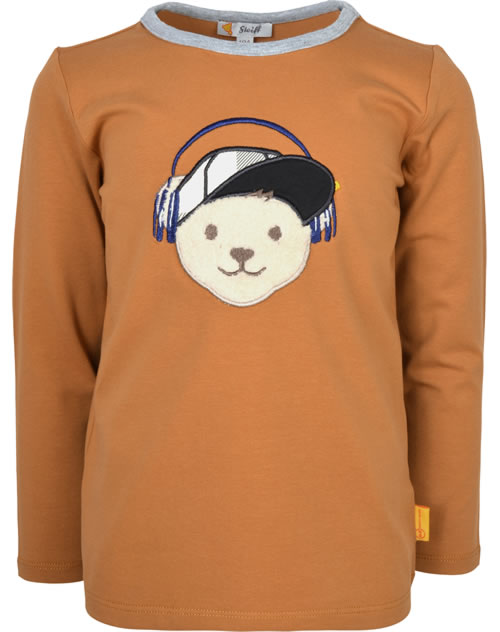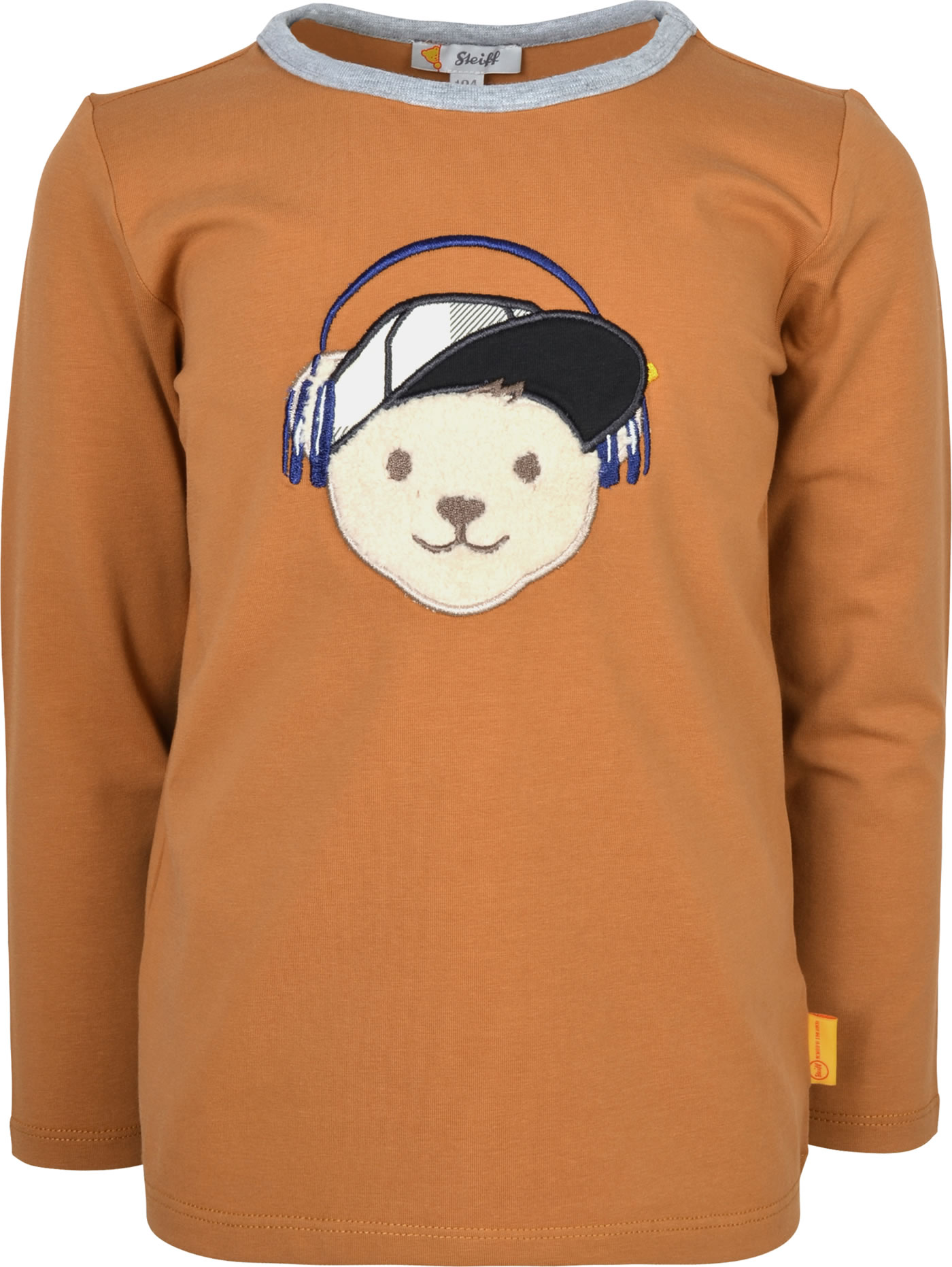 Langarm-Shirt für Jungen aus der Red Panda-Kollektion von STEIFF. Ein toller Hingucker ist der STEIFF Bär mit Baseballcap und Kopfhörern auf der Vorderseite.