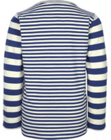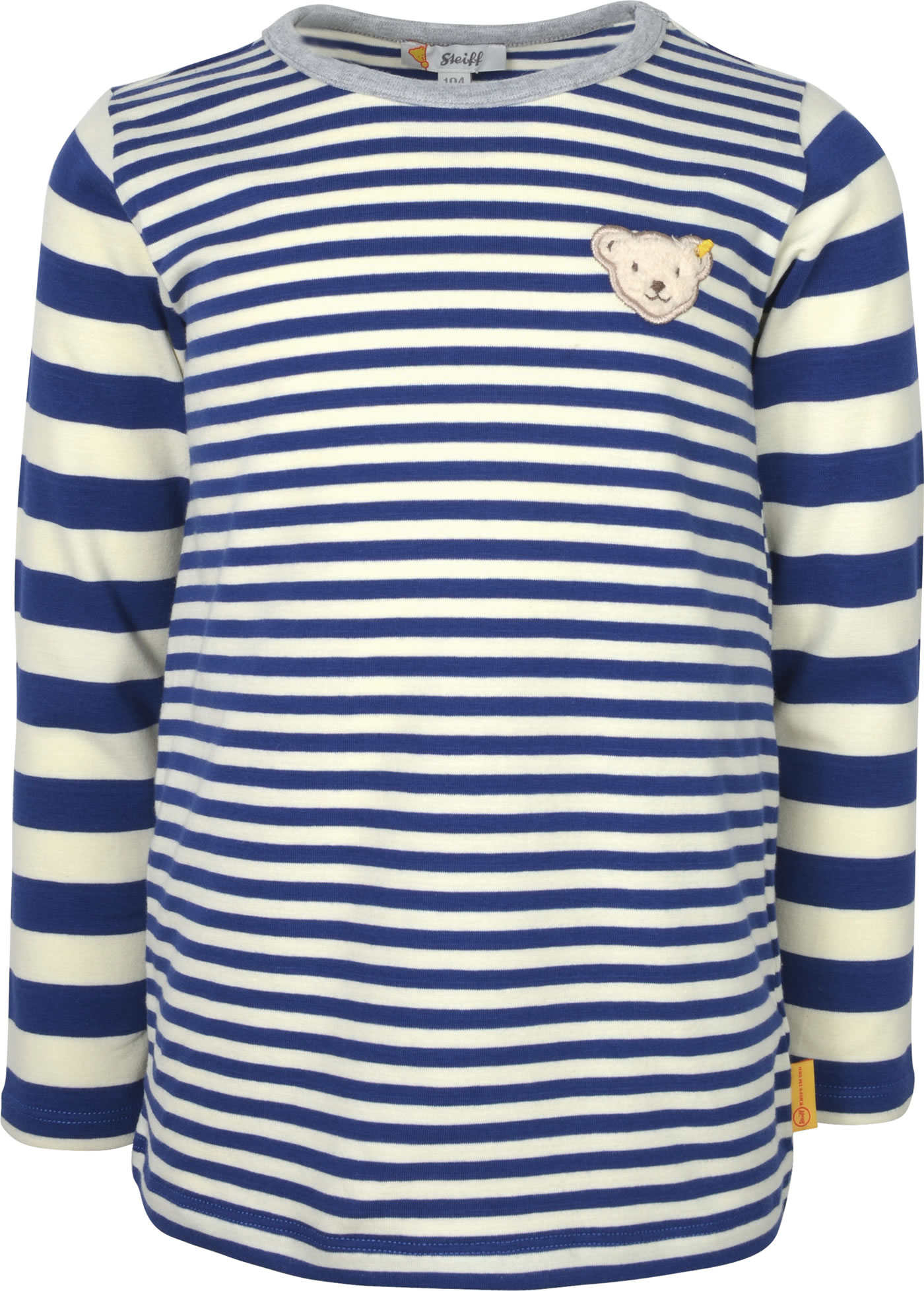 Gestreiftes Langarm-Shirt für Jungen aus der Red Panda-Kollektion von STEIFF. Der STEIFF Bär ziert die Vorderseite.Zu jeder Gelegenheit passend und herrlich bequem ist das langärmlige T-Shirt ein vielseitiges Basic. Weicher Jersey sorgt für ein herrliches Tragegefühl und wärmt angenehm. Flexible Abschlüsse ermöglichen unkompliziertes Hineinschlüpfen und Wohlfühlen. Eine lockere Passform schenkt aktiven Jungen Bewegungsfreiheit zum Spielen und Toben. Trendige ecru-blaue Streifen passen zu Alltagslooks und festlichen Kombinationen.