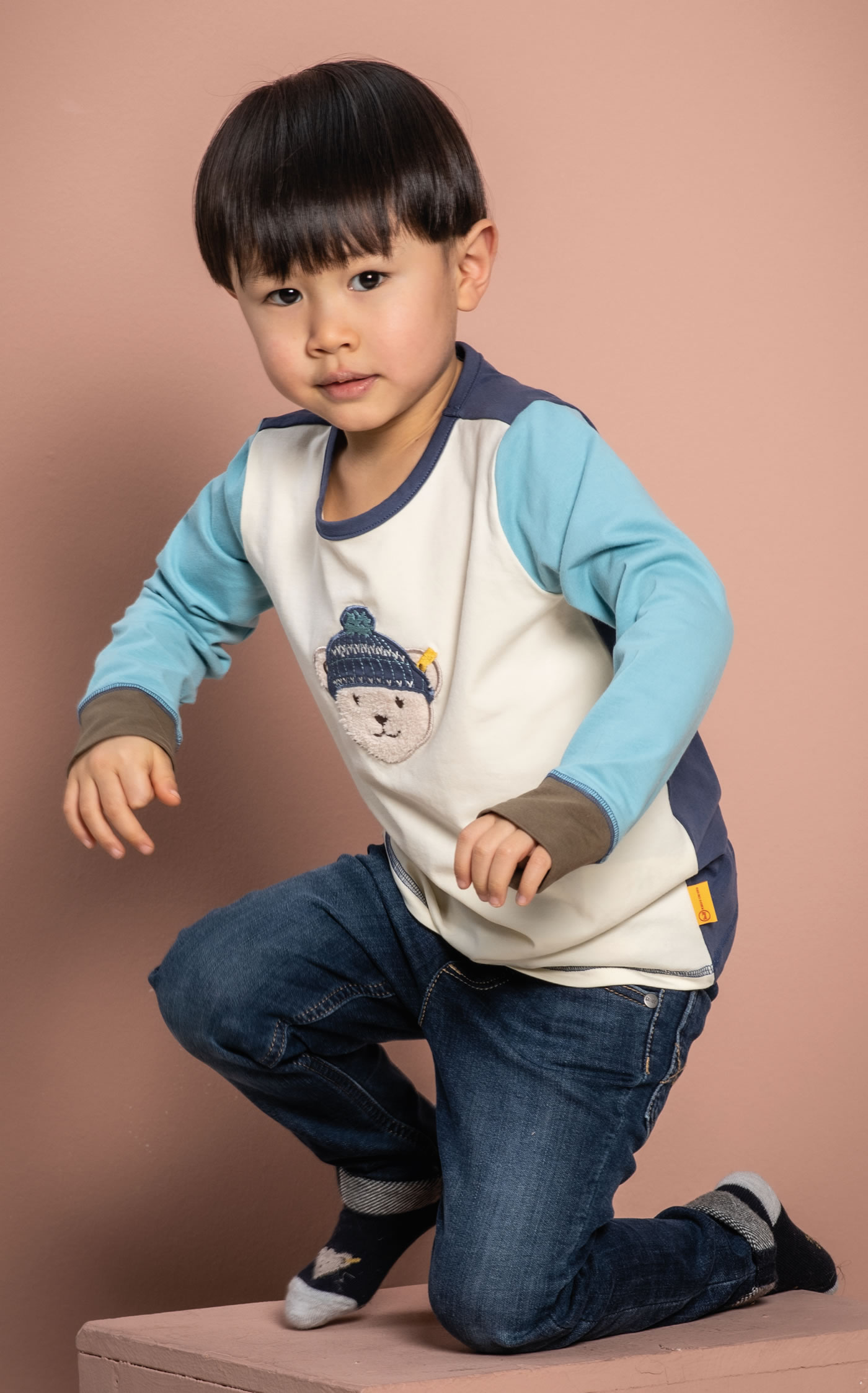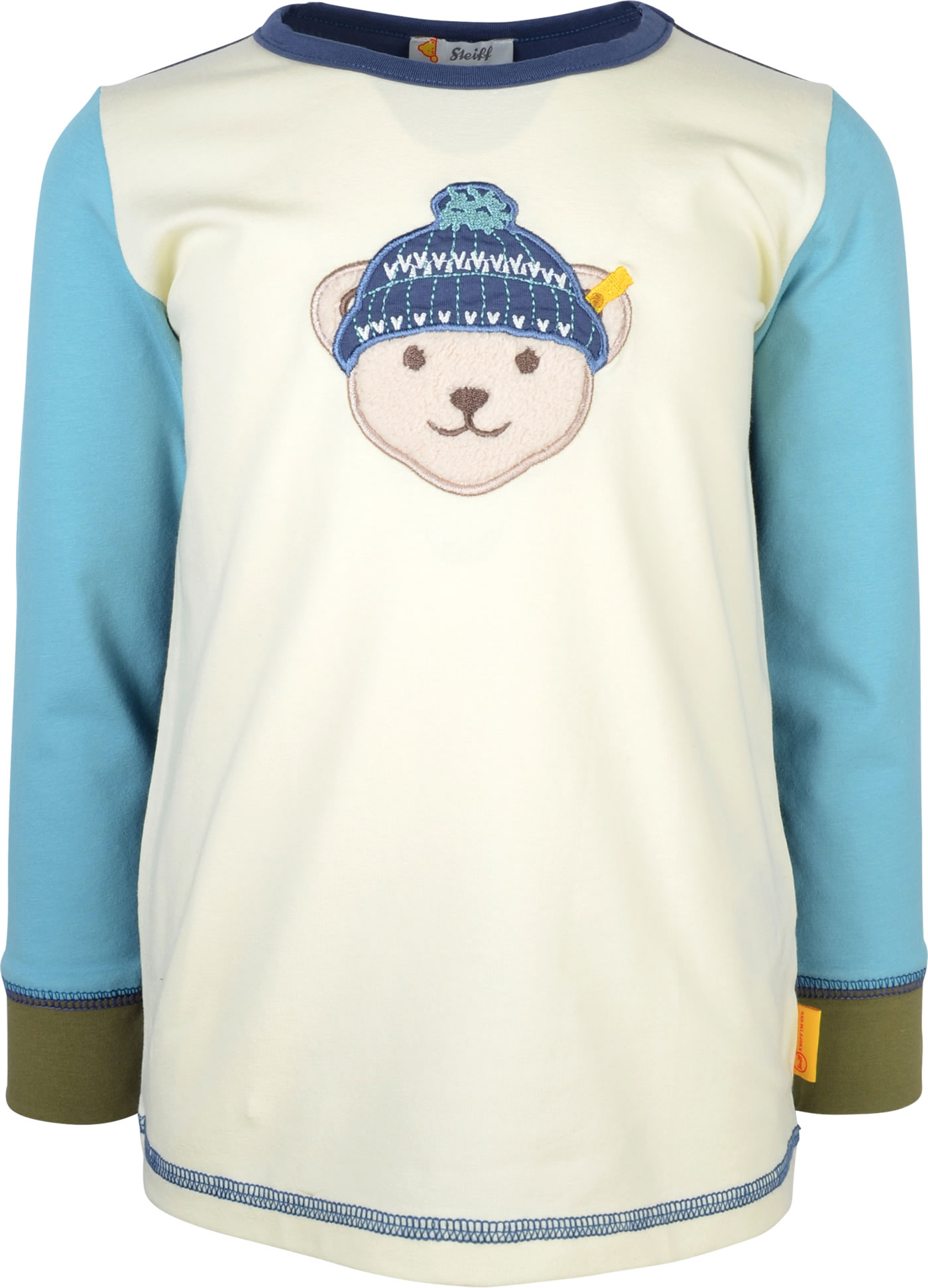 Langarm-Shirt für Jungen aus der Wolfs Land-Kollektion von STEIFF. Ein toller Hingucker ist der STEIFF Bär mit Mütze auf der Vorderseite. Der Mix aus verschiedenen Farben an Oberteil und Ärmeln setzt sportliche Akzente. Das weiche Material sorgt für einen hohen Tragekomfort.
