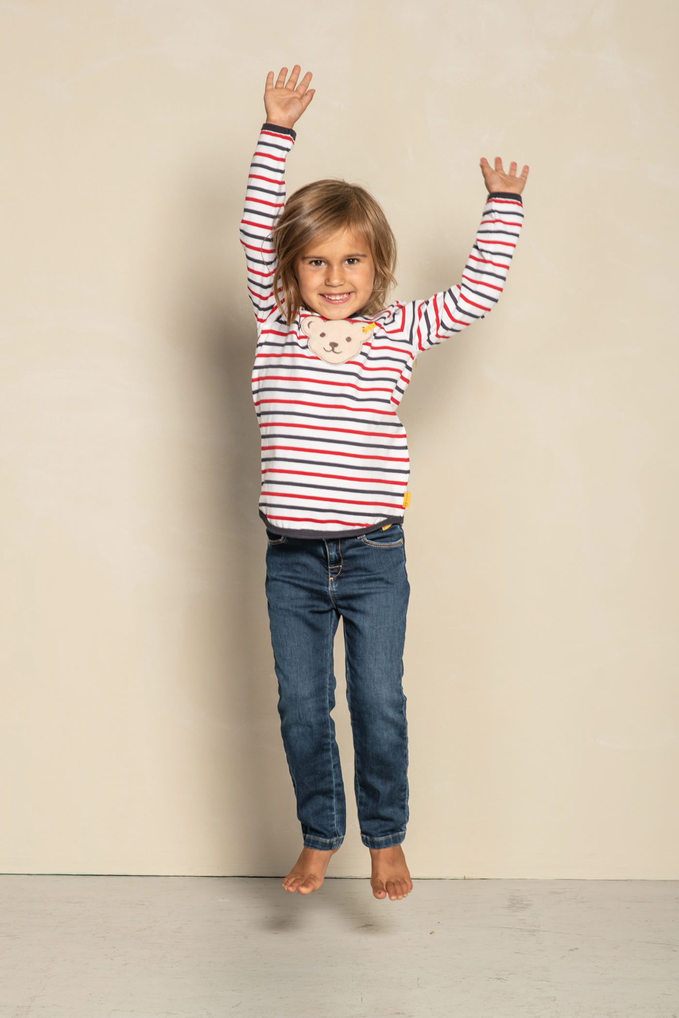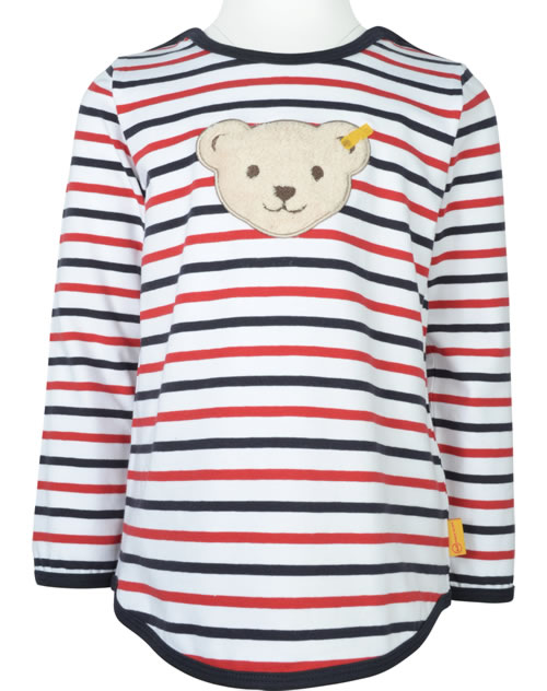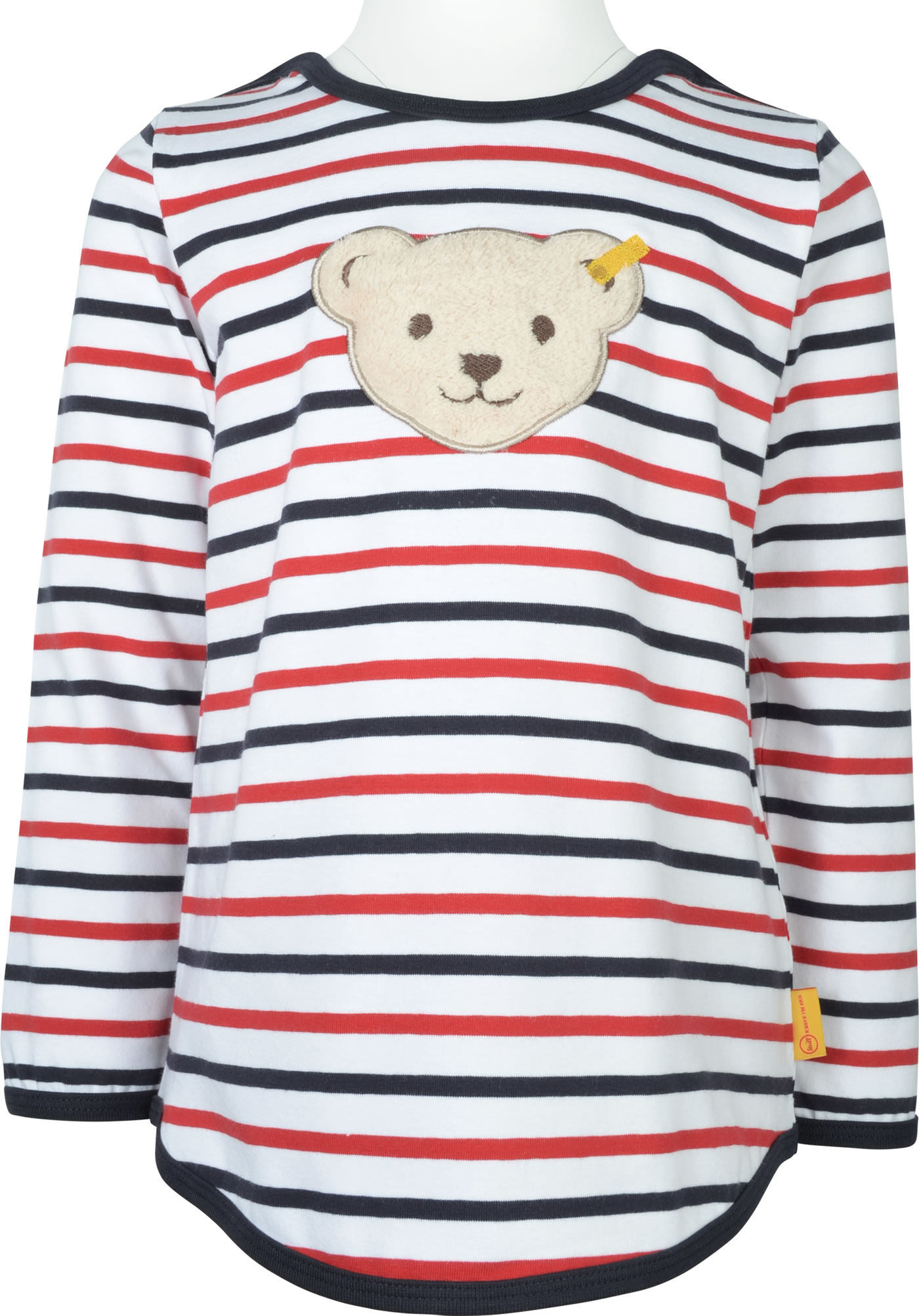 Gestreiftes Langarm-Shirt für Mädchen aus der Beach Please-Kollektion von STEIFF. Der STEIFF Bär auf der Brust ist mit Quietsche. Das weiche Material sorgt für einen hohen Tragekomfort.