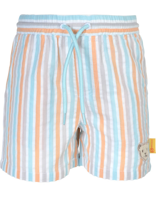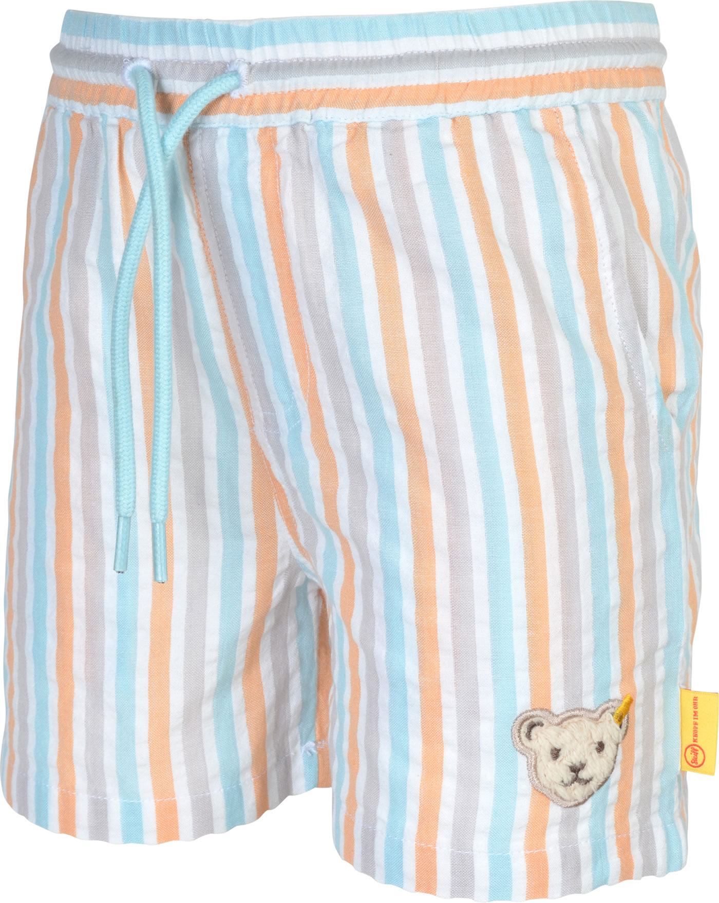 Hübsche Streifen-Shorts für Jungen von STEIFF aus der Happy Hippo Kollektion. Die Hose ist durch den Gummizugbund sehr bequem und lässt sich per Kordel in der Weite regulieren.