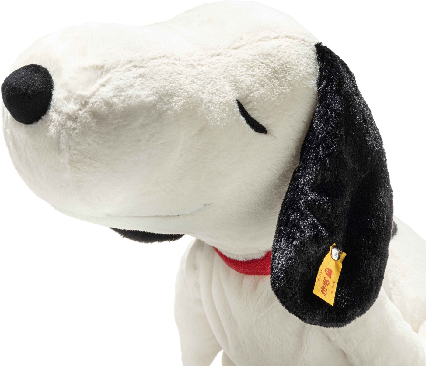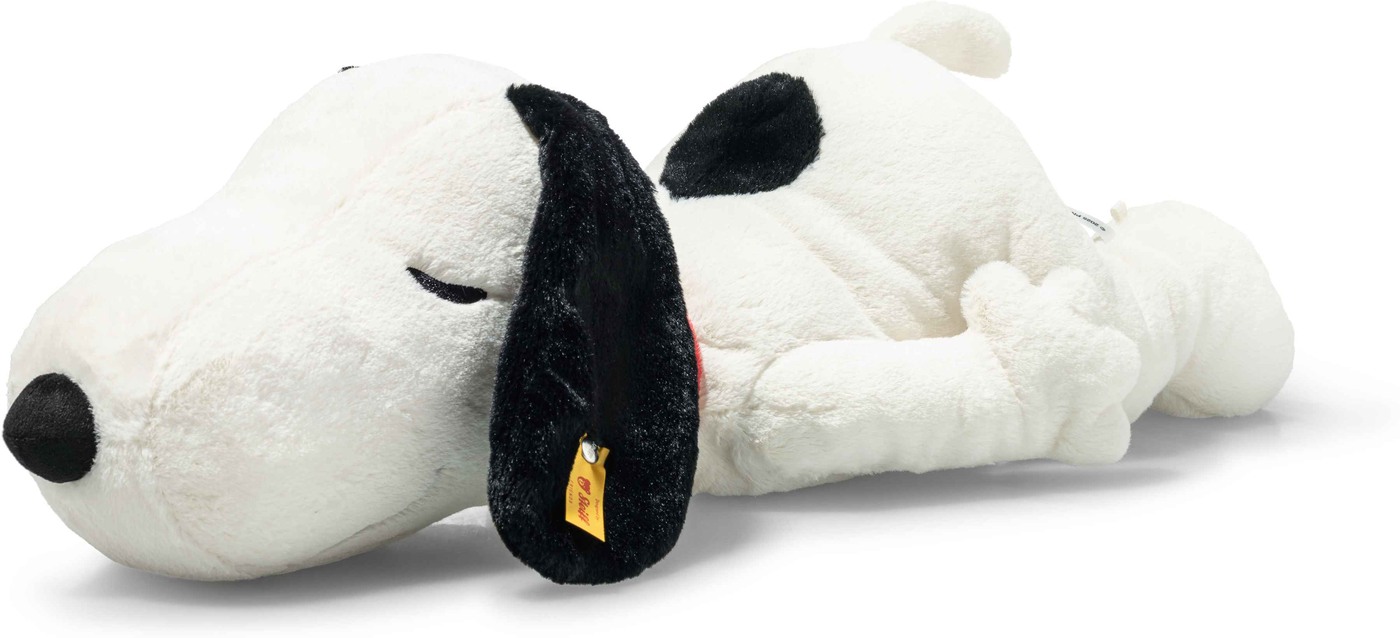 Er ist wohl der süßeste Träumer der Comicgeschichte: Charlie Browns Hund Snoopy schlummert auf dem Dach seiner Hundehütte und lässt sich durch nichts aus der Ruhe bringen. Auch dieser besonders große Plüsch-Beagle liegt entspannt auf seinem Bauch und lässt die Ohren baumeln. Mit dem lässigen Lächeln des gestickten Mundes und den geschlossenen Augen erlebt der weiße Beagle in seiner Phantasiewelt bestimmt gerade wieder tolle Abenteuer. Die mit Granulat gefüllten Gewichtssäckchen im Bauch und in den Füßen geben Snoopy Stabilität und sorgen dafür, dass er auch im Schlaf nicht vom Dach fällt.