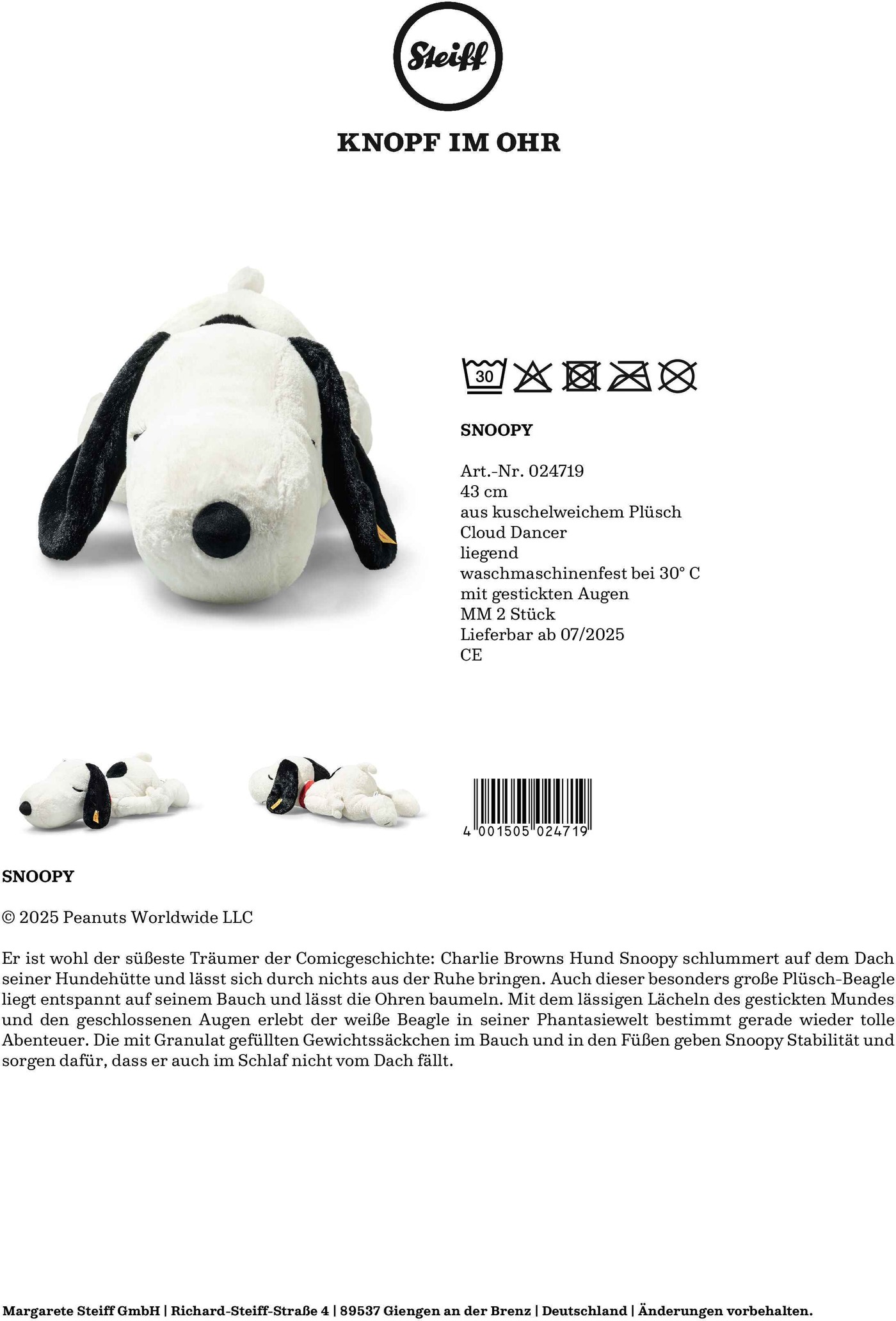 Lizenzvermerk © 2025 Peanuts Worldwide LLC
