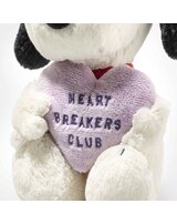 Snoopy, Charlie Browns Hund in der Comic-Kultserie „Peanuts“, verhält sich nur selten artgerecht. Der weiße Beagle hält nicht viel von Konventionen, so dass diesem 22 cm großen Hund au Plüsch durchaus zuzutrauen ist, dass er auf Traditionen wie den Valentinstag pfeift. Passend dazu hält er ein lila Anti-Valentinstag-Herz mit dem aufgestickten Schriftzug „Heartbreakers Club“ in den Händen und trägt mit den gestickten Augen und Mund einen verschmitzten Ausdruck in seinem Gesicht. Durch die mit Granulat gefüllten Gewichtssäckchen in Füßen und Gesäß wirft den kleinen Herzensbrecher so schnell nichts aus der Bahn.