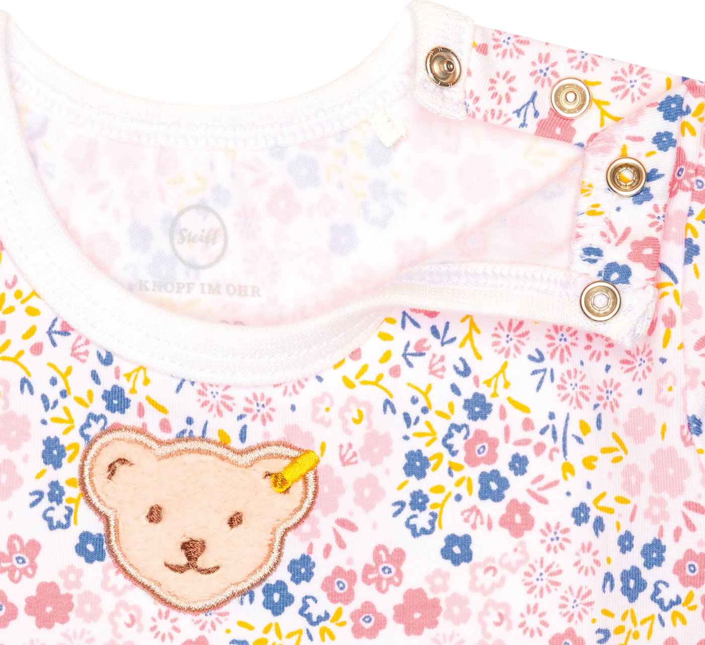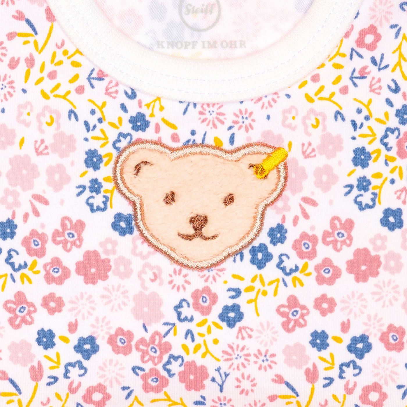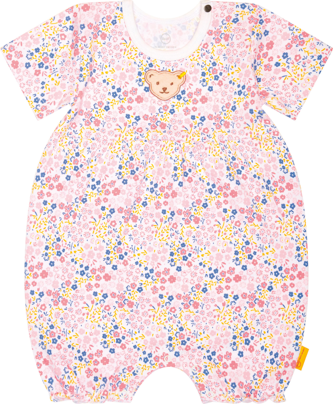Bequem geschnittener Kurzarm-Spieler aus der Serendipity-Kollektion von STEIFF für Mädchen. Hübsche Details sind das zarte Blümchen-Muster und der kleine STEIFF Bär auf der Brust. Die Druckknopfleiste an der Schulter und im Schritt erleichtern das Umziehen oder Windelwechseln Das weiche Material bietet einen hohen Tragekomfort.