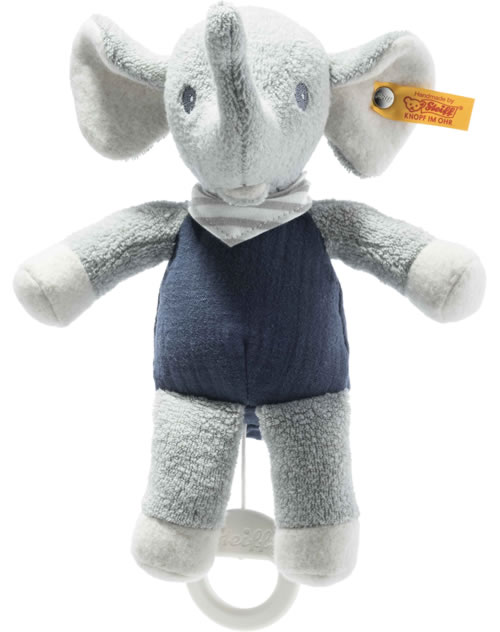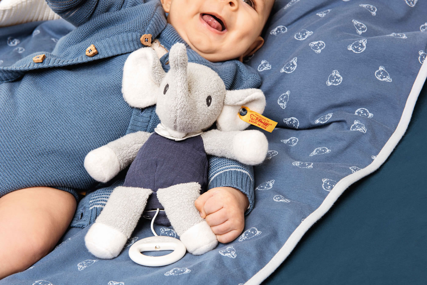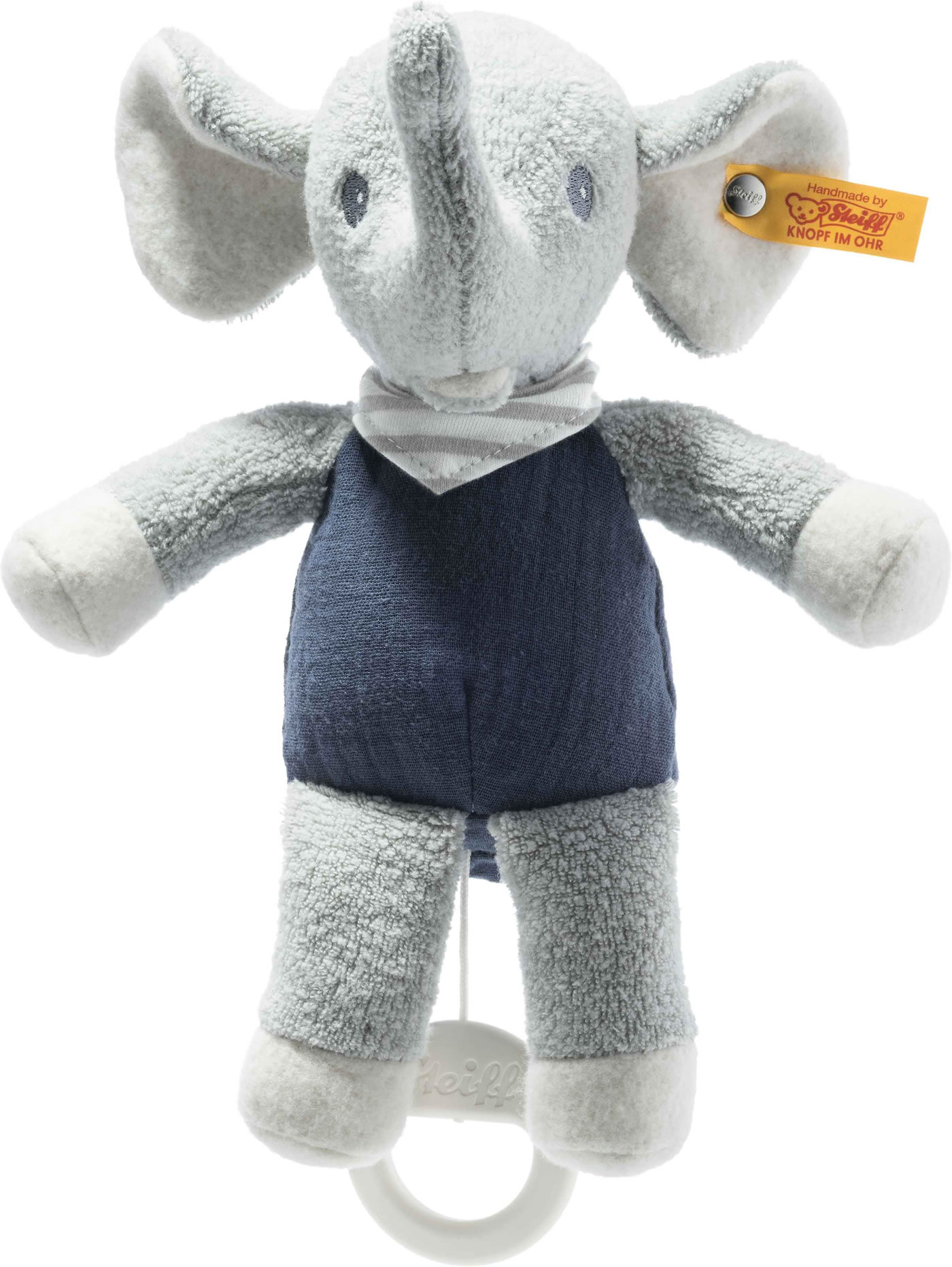 Steiff Spieluhr Elefant Eliot 22 cm hellgrau/blau GOTS