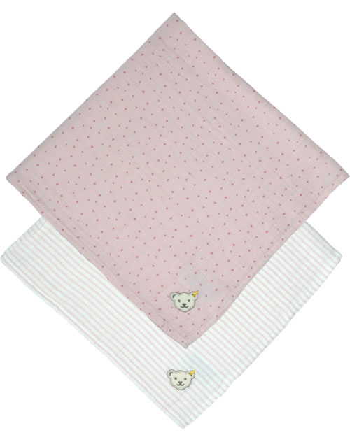 Steiff Spucktuch Mullwindel 2-tlg. ORGANIC DOTS Baby silver pink