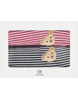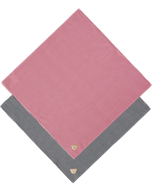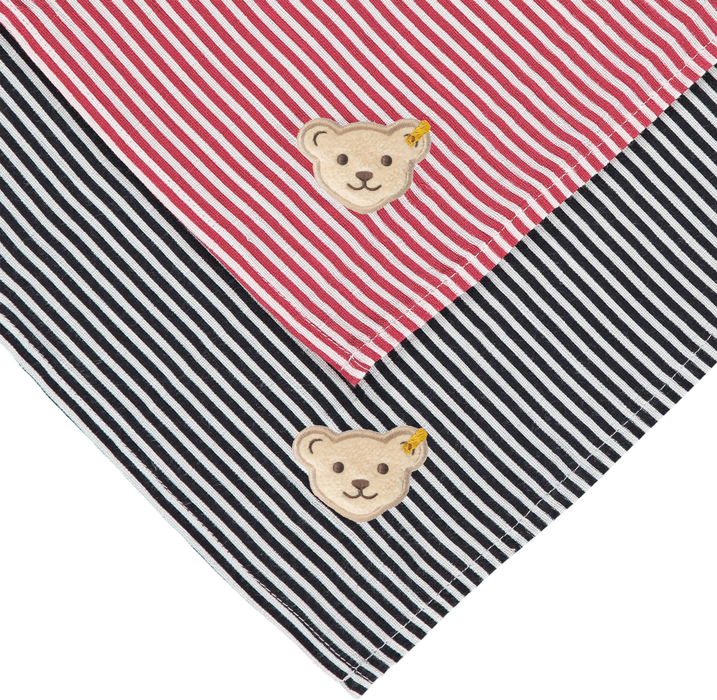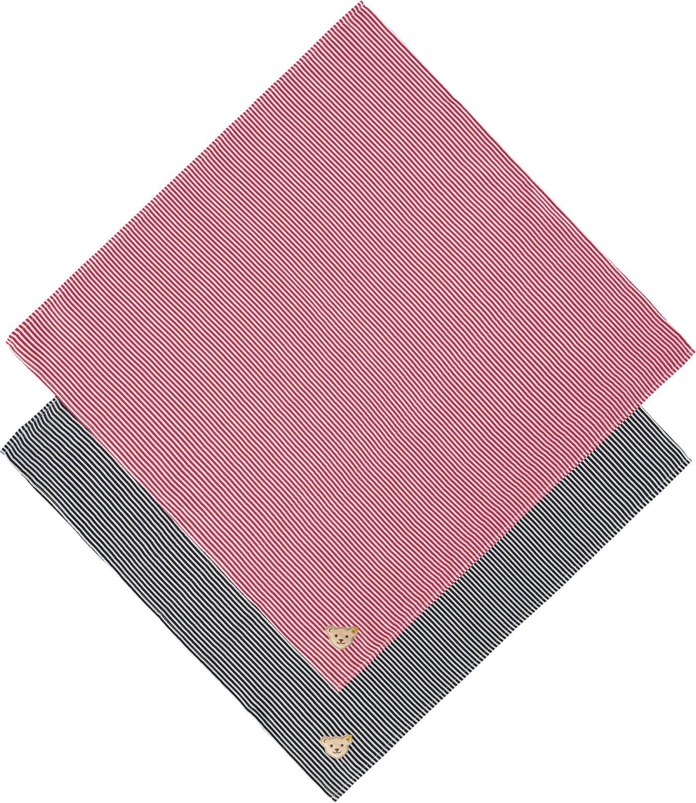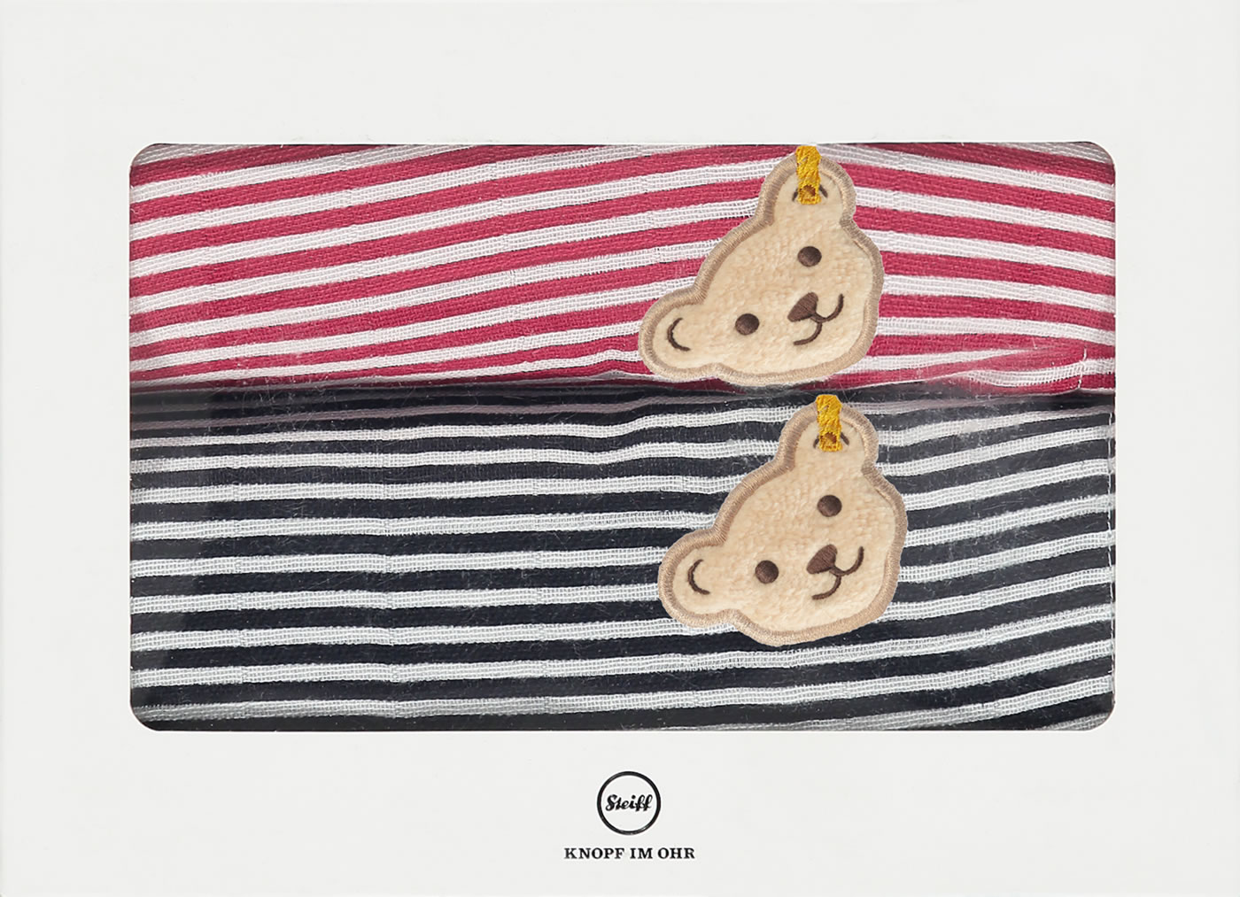 Ein schönes Geschenk zur Geburt sind diese 2 Tücher in einer hübschen Präsent-Box. Die Tücher in rot-weiß und marine-weiß gestreift sind mit dem STEIFF Bären verziert. Sie eignen sich hervorragend als Spucktücher, Schmusetücher oder als Mullwindel.