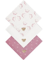 Ein schönes Geschenk zur Geburt sind diese 3 Tücher in einer hübschen Präsent-Box. Die Tücher mit drei verschiedenen Mustern sind mit dem STEIFF Bären verziert. Sie eignen sich hervorragend als Spucktücher, Schmusetücher oder als Mullwindel.