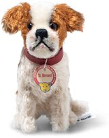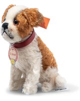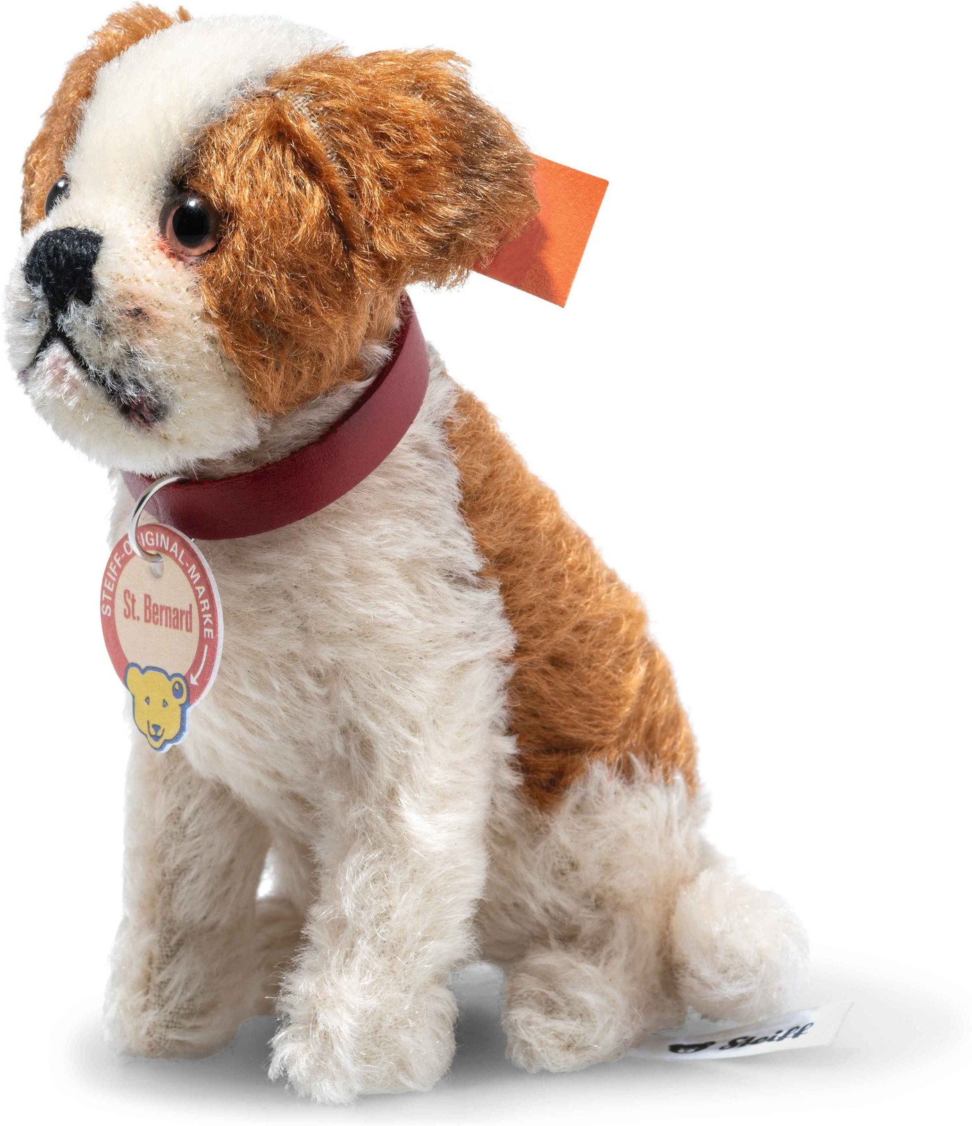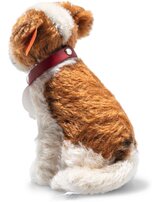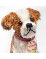 Die 1920er und 1930er Jahre waren eine wahre Blütezeit für Steiff Hunde. Fast jede Hunderasse wurde mindestens einmal in jedem Katalog präsentiert. Die modischen Hunderassen der damaligen Zeit beeinflussten maßgeblich das Design eines jeden Hundes. Eine dieser Rassen ist der Bernhardiner, der Nationalhund der Schweiz. Selbst mit einer Größe von nur 10 cm verkörpert dieser sanfte Riese das Wesen des Hundes, von dem er inspiriert wurde. Er ist eine feine kleine Replica mit sorgfältig aufgetragenen Details, die perfekt zu seiner Rasse passen. Ein freundlicher und wohltätiger Begleiter, der sein Herrchen oder Frauchen immer beschützen wird.